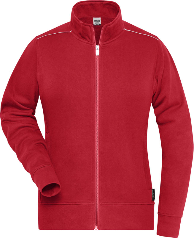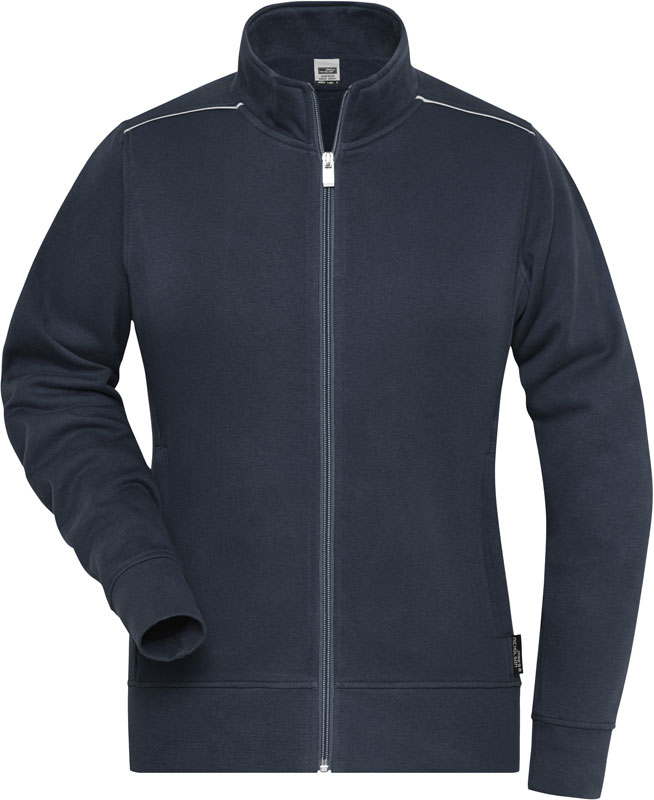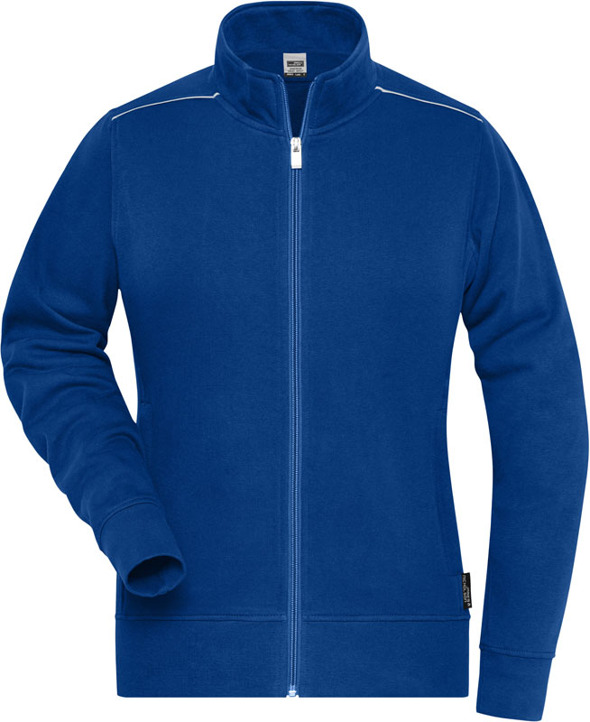 Damen Workwear Sweatjacke – Solid, Stehkragen, Rippstrickbündchen an Ärmel- und Bundabschluss mit Elasthan, YKK Reißverschlüsse, 2 Seitentaschen mit verdecktem Reißverschluss, Paspel in Kontrastfarbe an Vorder- und Rückenteil, innen angeraut, 60° waschbar, trocknergeeignet bei niedriger Temperatur, Material: 290g/m², 70% gekämmte ringgesponnene Baumwolle, 30% Polyester, Größen: XS,S,M,L,XL,XXL,3XL,4XL