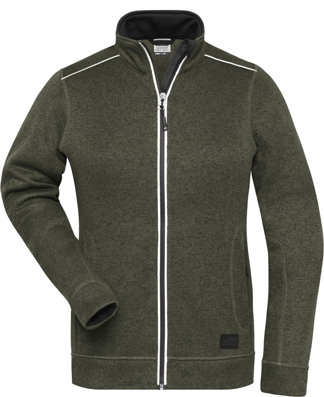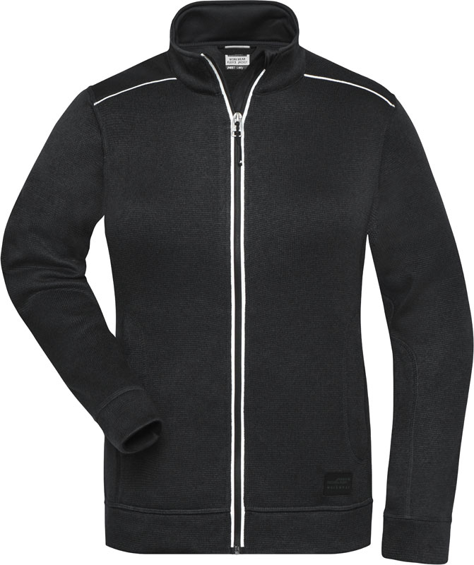 Damen Workwear Strickfleece Jacke – Solid, Leicht taillierter Schnitt, Stehkragen, rollierte Kanten, durchgehend unterlegter Reißverschluss mit Kinnschutz, YKK Reißverschlüsse, 2 Seitentaschen mit verdecktem Reißverschluss, 2 Innentaschen, Melange-Optik, innen angeraut, Reflexelemente (ohne Schutzfunktion) an Reißverschluss, Schulter und Rückenteil, 30° waschbar, Schonwäsche, nicht trocknergeeignet, Material: 280g/m², 100% Polyester, Größen: XS,S,M,L,XL,XXL,3XL,4XL