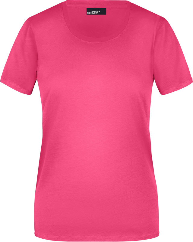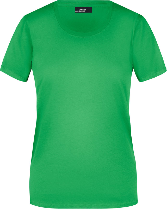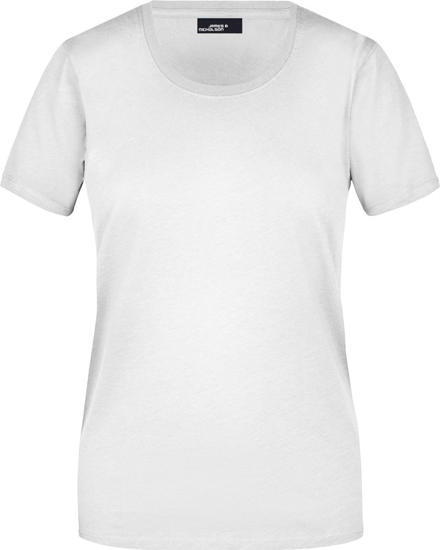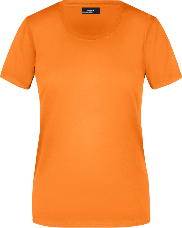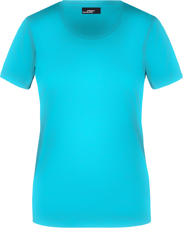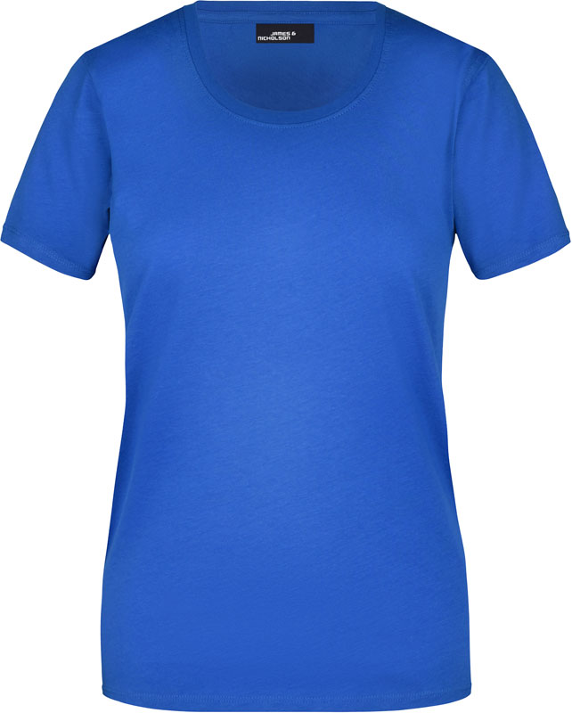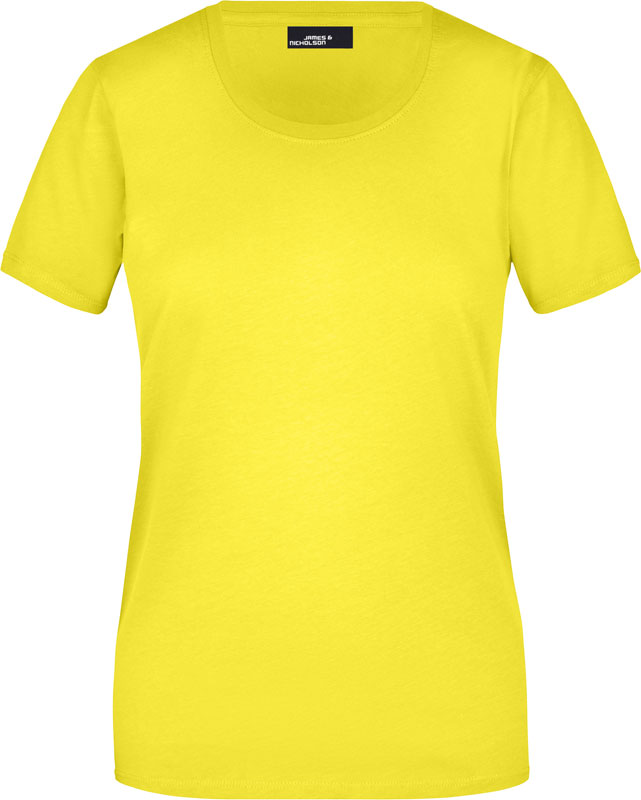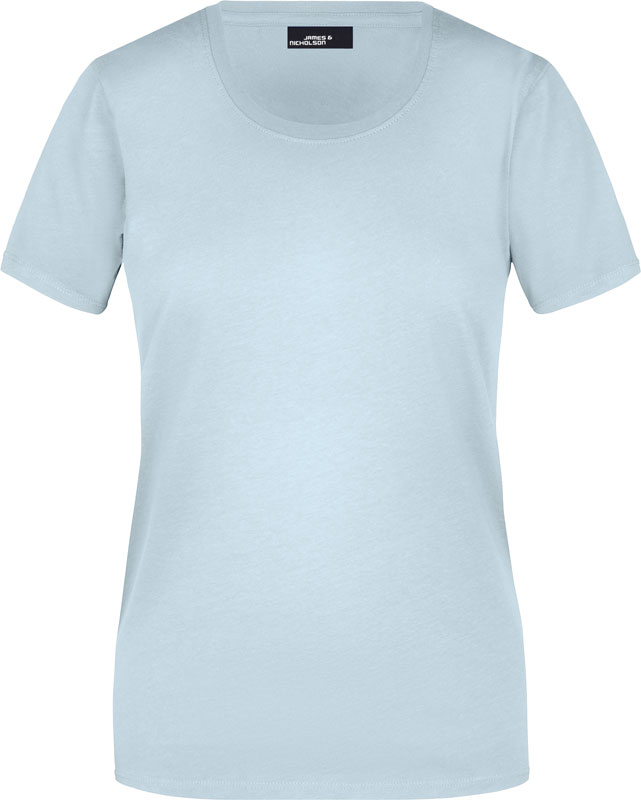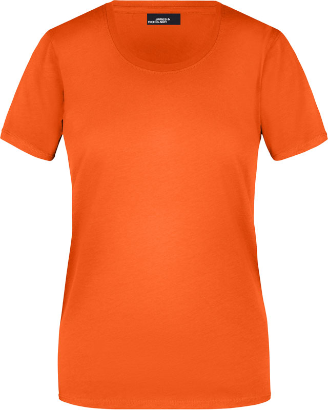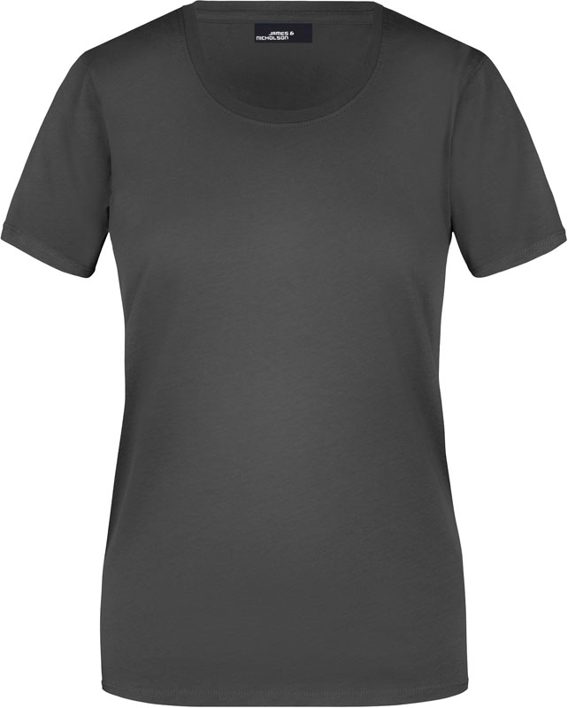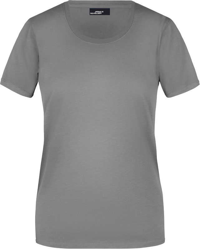 Damen T-Shirt, Leicht taillierter Schnitt, großzügiger Rundhalsausschnitt mit Feinstrickbündchen, Nackenband, Doppelnähte an Schultern, Hals- und Armausschnitt, 40° waschbar, nicht trocknergeeignet, Material: 150g/m², 100% Baumwolle, Single Jersey, Größen: S,M,L,XL,XXL,3XL