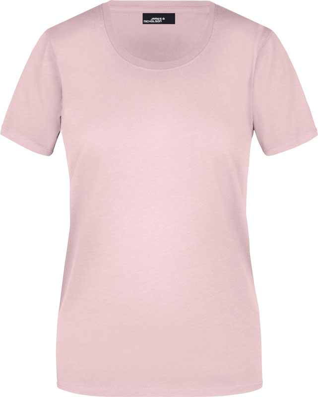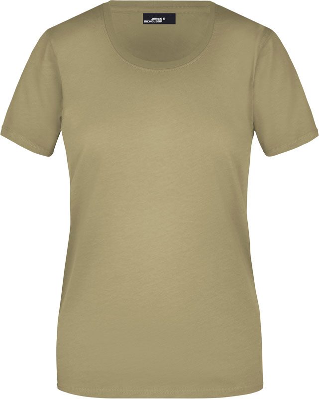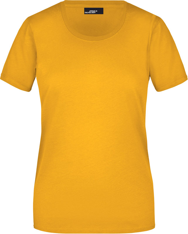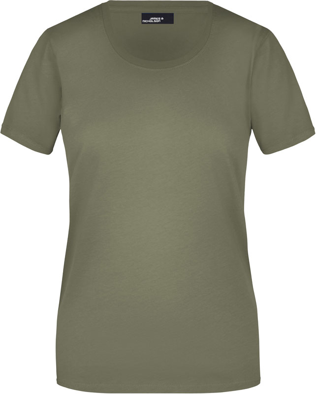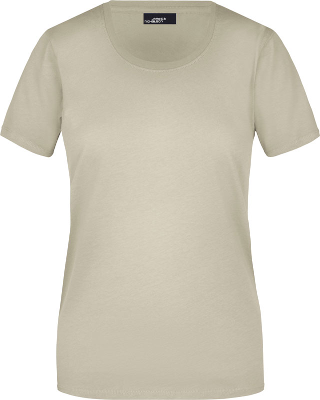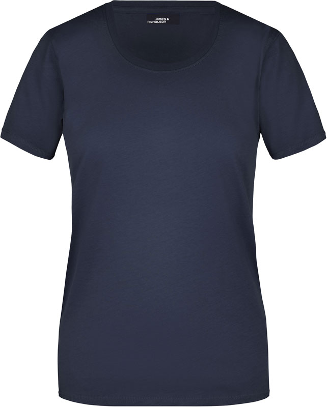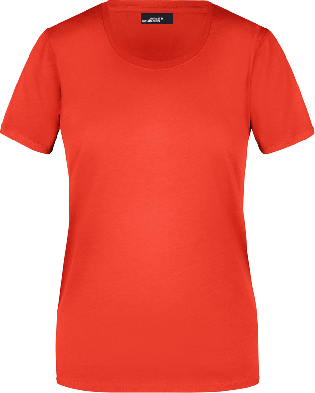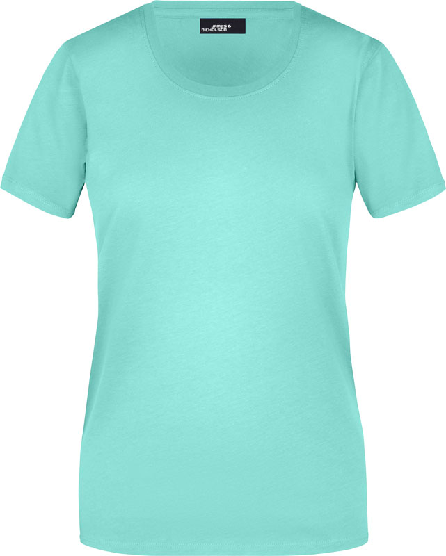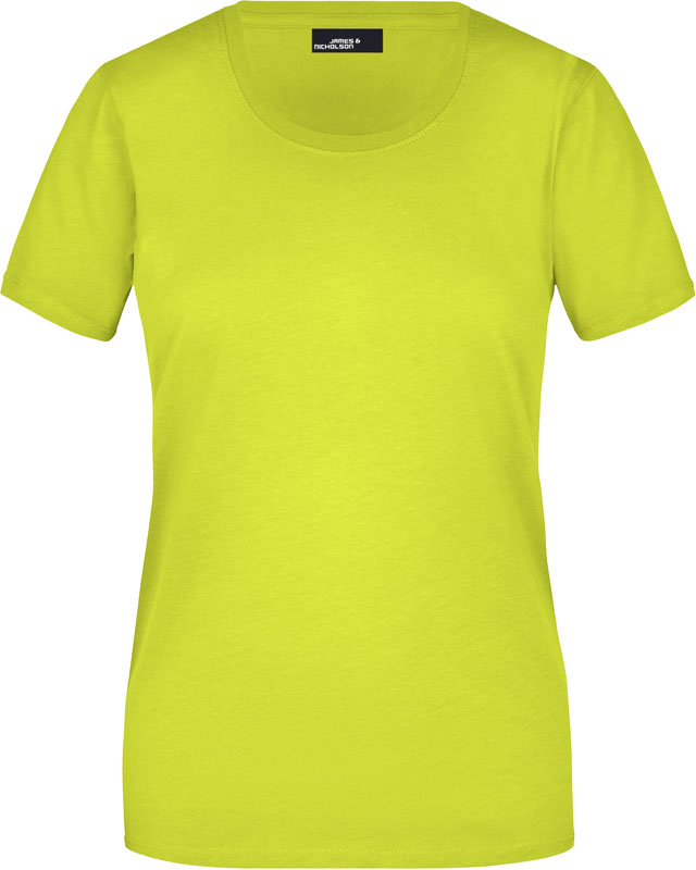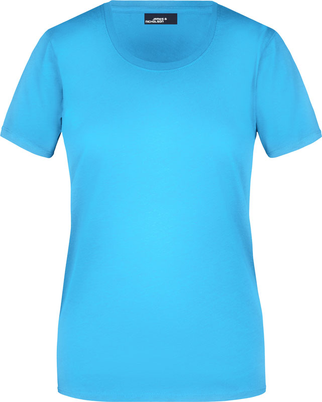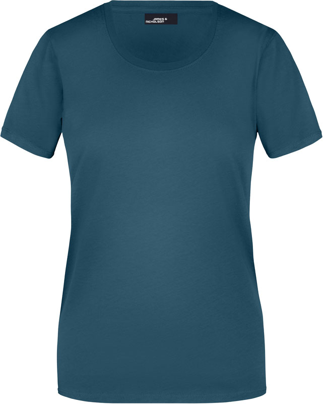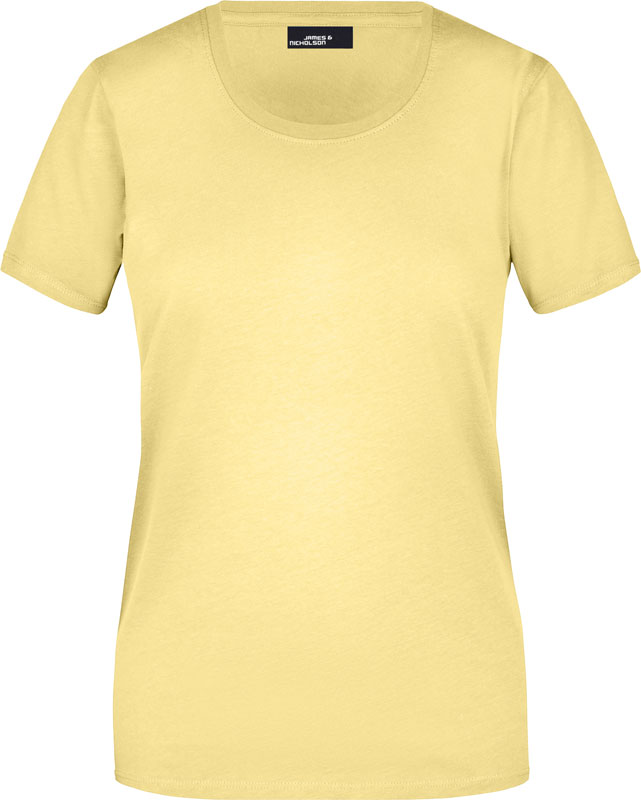 Damen T-Shirt, Leicht taillierter Schnitt, großzügiger Rundhalsausschnitt mit Feinstrickbündchen, Nackenband, Doppelnähte an Schultern, Hals- und Armausschnitt, 40° waschbar, nicht trocknergeeignet, Material: 150g/m², 100% Baumwolle, Single Jersey, Größen: S,M,L,XL,XXL,3XL