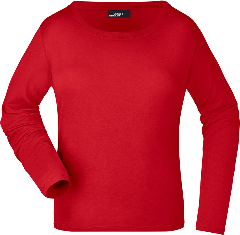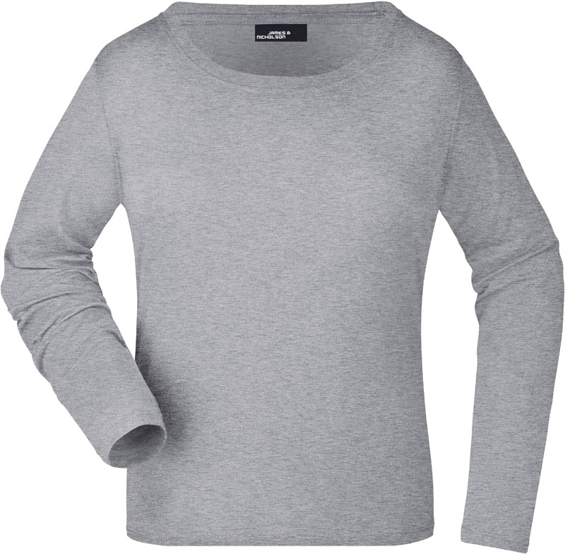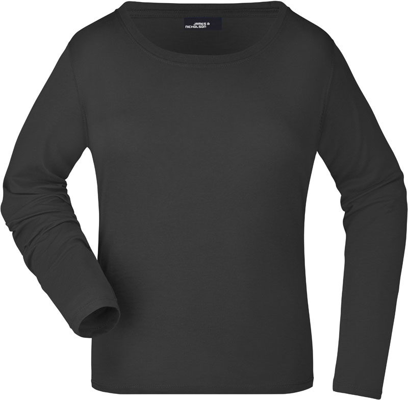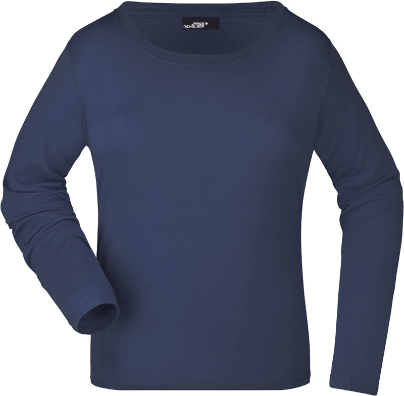 Damen T-Shirt langarm, Leicht taillierter Schnitt, großzügiger Ausschnitt mit Feinstrickbündchen, Nackenband, Doppelnähte an Schultern, Hals- und Armausschnitt, 40° waschbar, nicht trocknergeeignet, Material: 150g/m², 100% gekämmte ringgesponnene Baumwolle, Single Jersey, Größen: S,M,L,XL,XXL,3XL