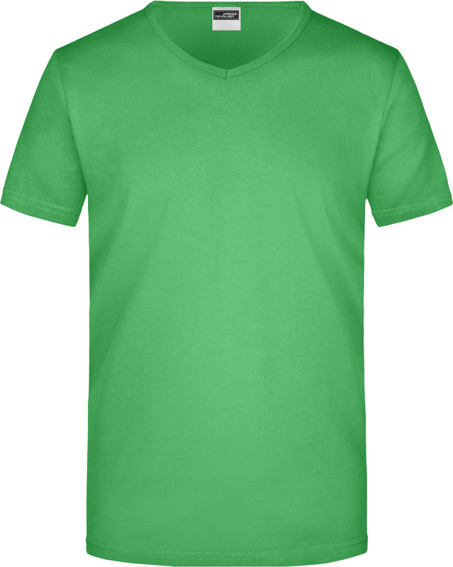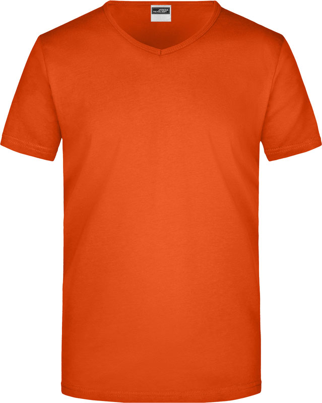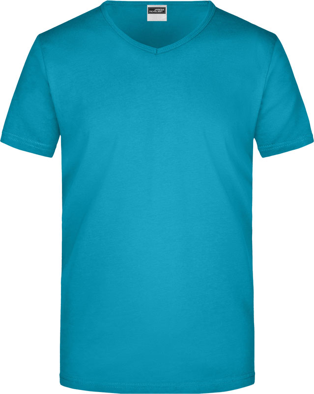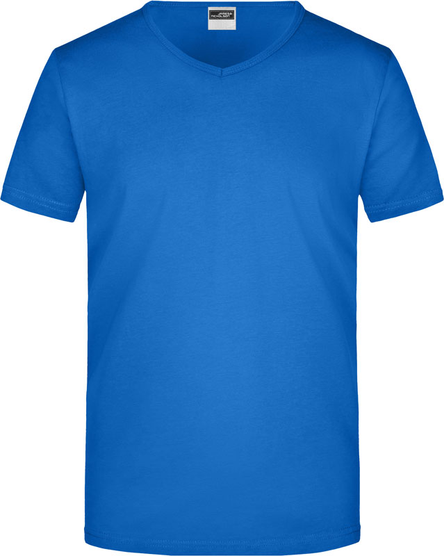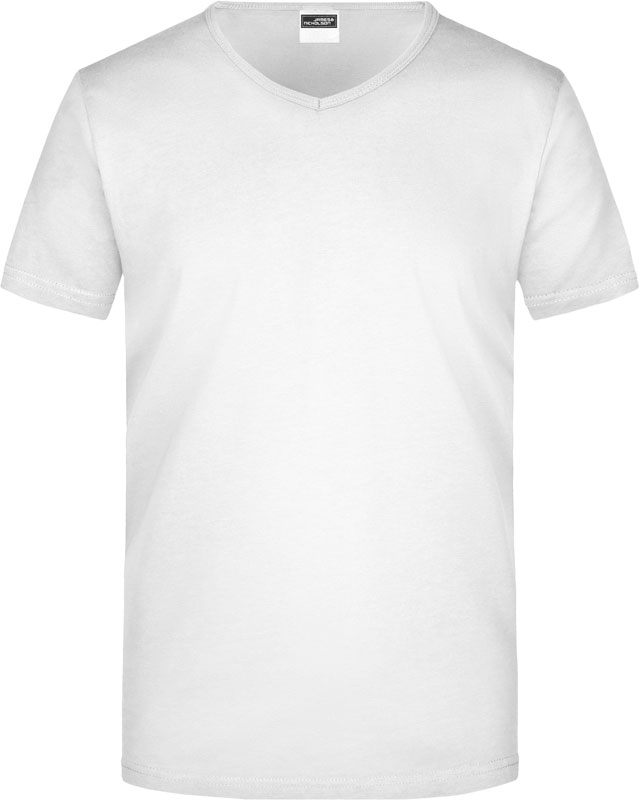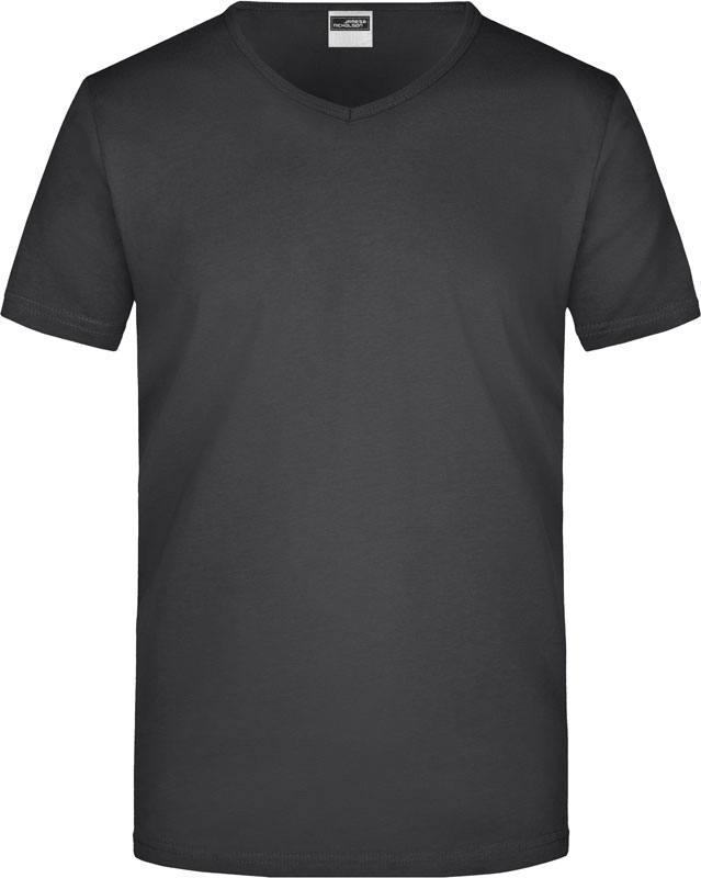 Tailliertes Herren V-Ausschnitt T-Shirt, Enganliegendes V-Ausschnitt T-Shirt, taillierter Schnitt, tiefer V-Ausschnitt mit 1×1 Bündchen eingefasst, formbeständig, 40° waschbar, nicht trocknergeeignet, Material: 160g/m², 100% einlaufvorbehandelte gekämmte ringgesponnene Baumwolle, Single Jersey, Größen: S,M,L,XL,XXL