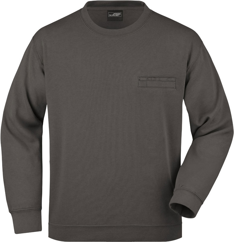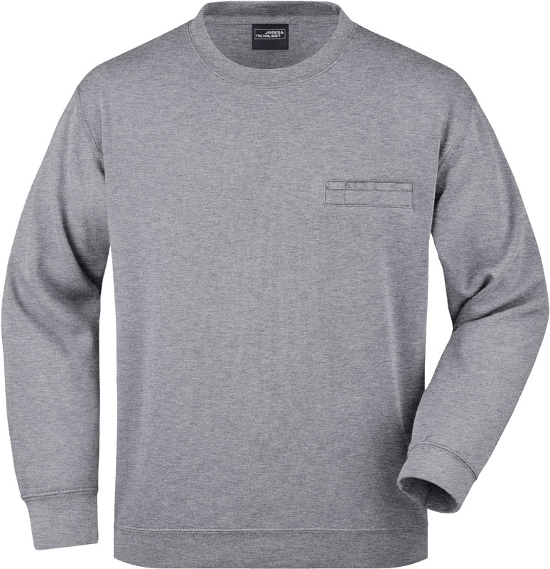 Sweater mit Brusttasche, Nackenband und Halbmondbesatz im Nacken, Bündchen mit Elasthan, robuste Doppelnähte an Hals- und Armausschnitt, Schultern und Bund, 3-fädige Sweat-Qualität, innen angeraut, formbeständig, 60° waschbar, trocknergeeignet bei niedriger Temperatur, Material: 300g/m², 80% Baumwolle, 20% Polyester, Größen: S,M,L,XL,XXL,3XL