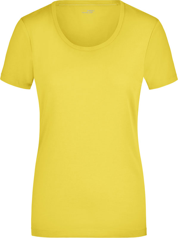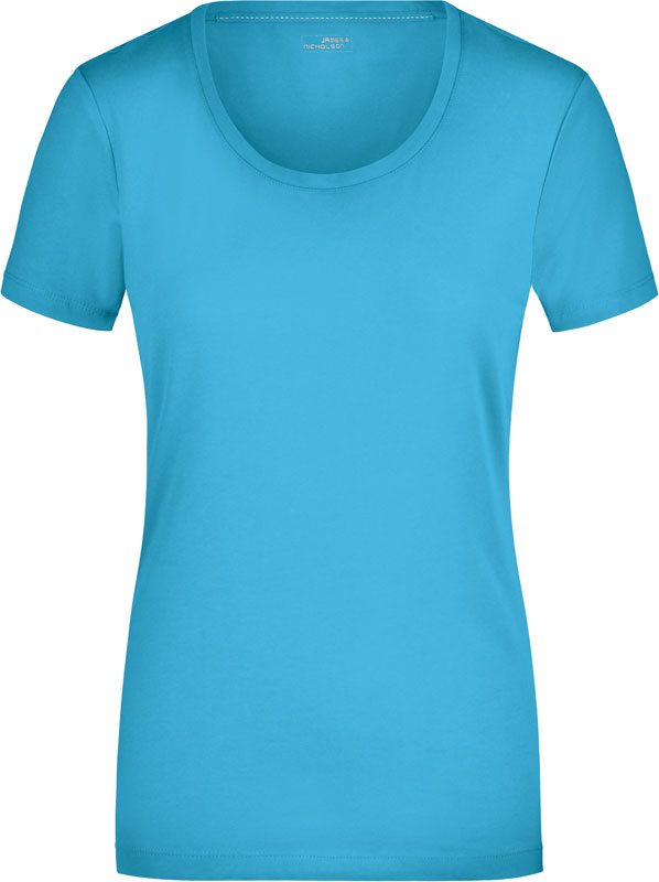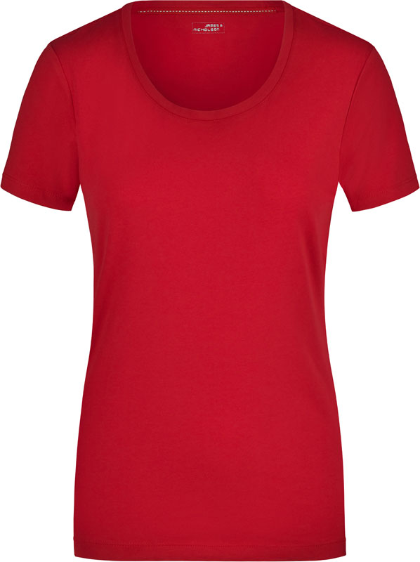 Damen Stretch T-Shirt, Großzügiger Schnitt, halsferner Rundhalsausschnitt, 40° waschbar, nicht trocknergeeignet, Material: 170g/m², 95% gekämmte ringgesponnene Baumwolle, 5% Elasthan, Single Jersey, Größen: S,M,L,XL,XXL