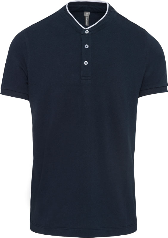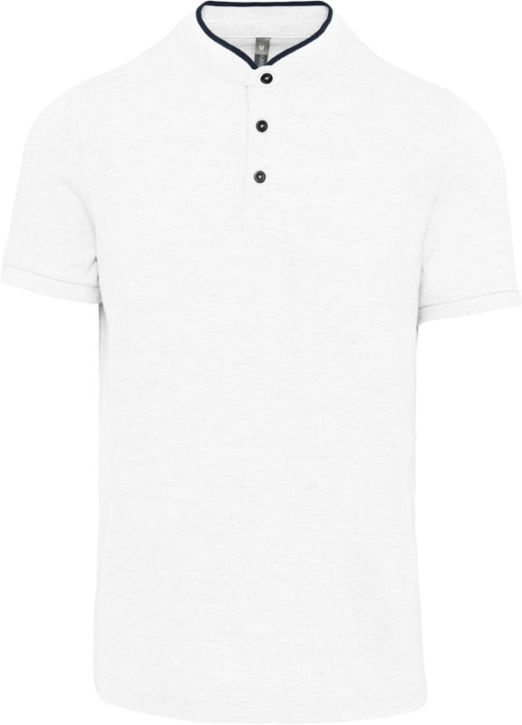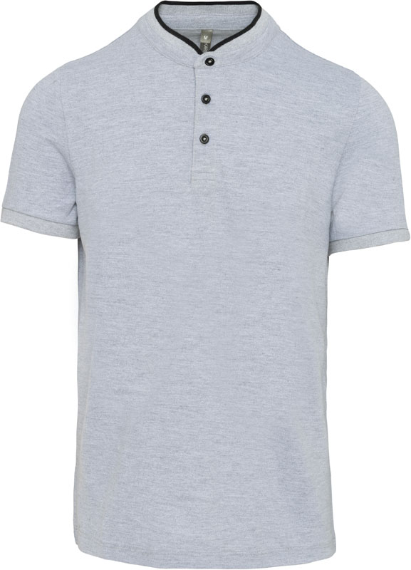 Herren Polo mit Maokragen, Maokragen mit Strickbündchen und Paspel in Kontrastfarbe, 3er Knopfleiste mit Knöpfen in Kontrastfarbe, Strickbündchen am Ärmel, Doppelnähte am Saum, 60° waschbar, trocknergeeignet bei niedriger Temperatur, nicht chemisch reinigen, Material: 220g/m², 100% gekämmte Baumwolle, oxford grey: 90% gekämmte Baumwolle, 10% Viskose, Größen: XS,S,M,L,XL,XXL,3XL