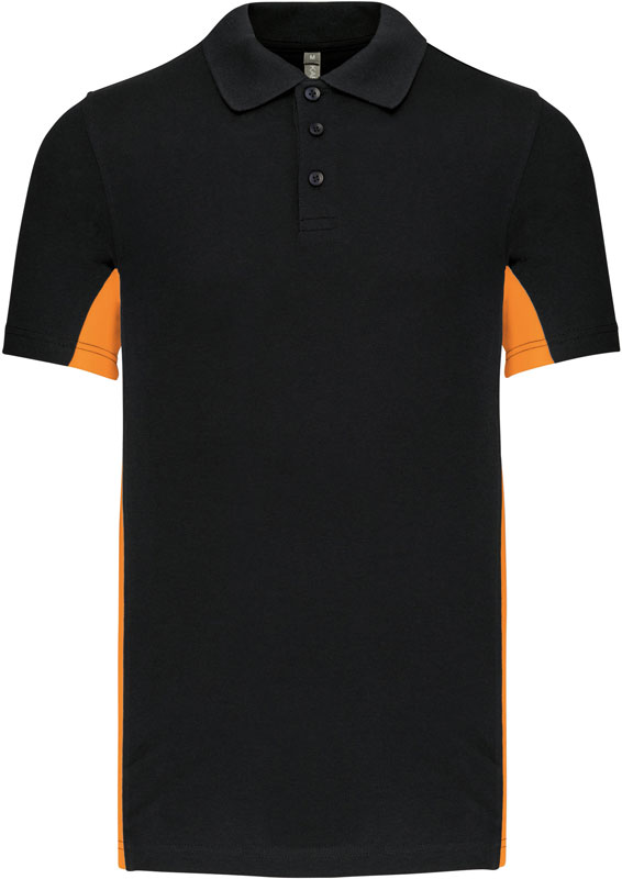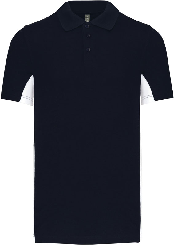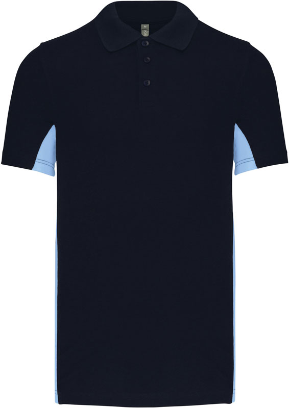 2-farbiges Piqué Polo „Flag“, Rippstrickkragen, 3er Knopfleiste Ton-in-Ton, Einsätze in Kontrastfarbe seitlich und unter dem Ärmel, Seitenschlitze, 40° waschbar, trocknergeeignet bei niedriger Temperatur, Material: 220g/m², 65% Polyester, 35% Baumwolle, Piqué, Größen: S,M,L,XL,XXL,3XL