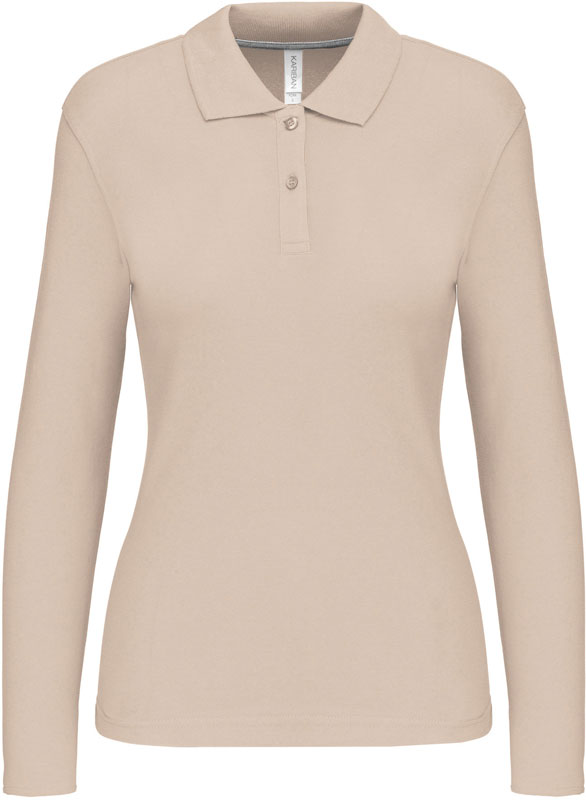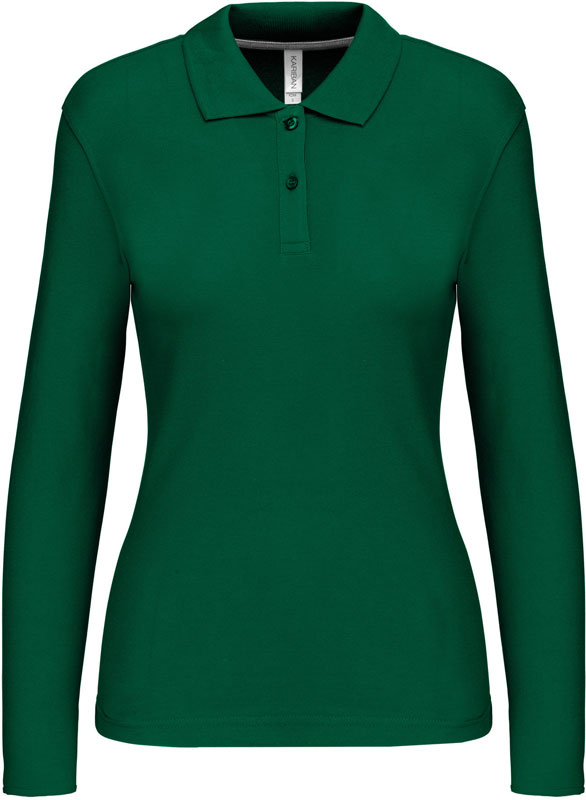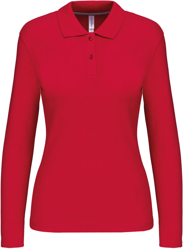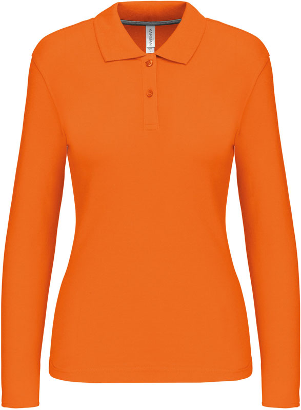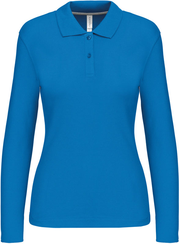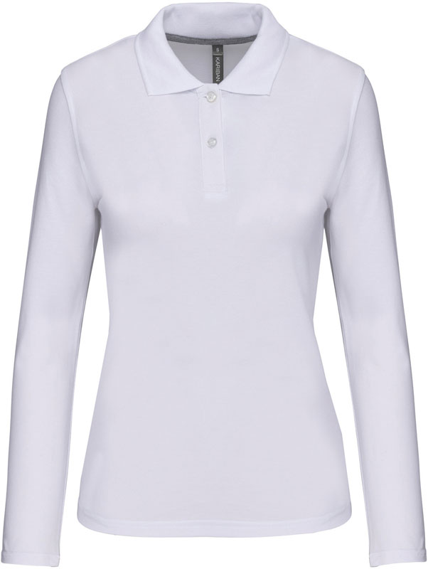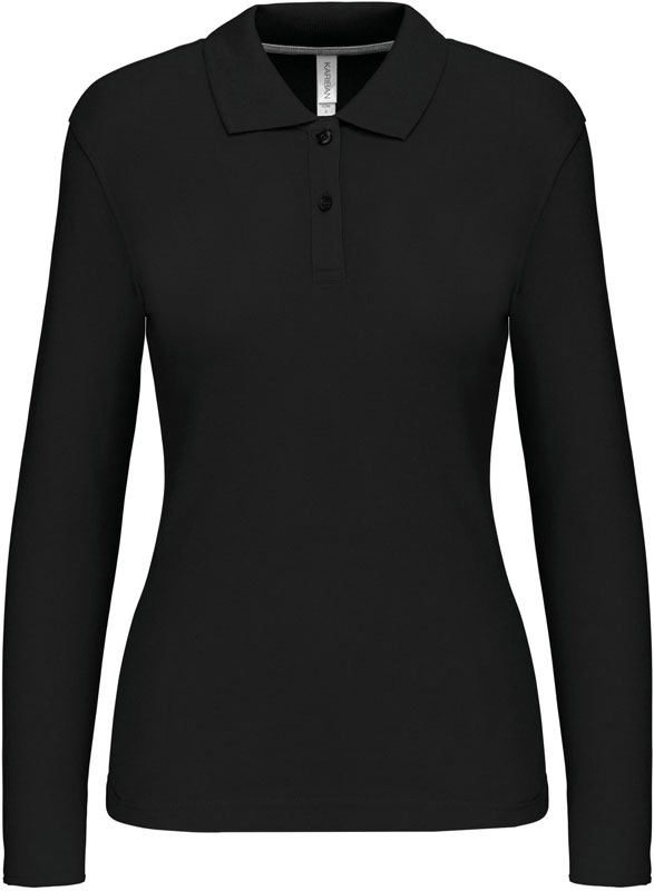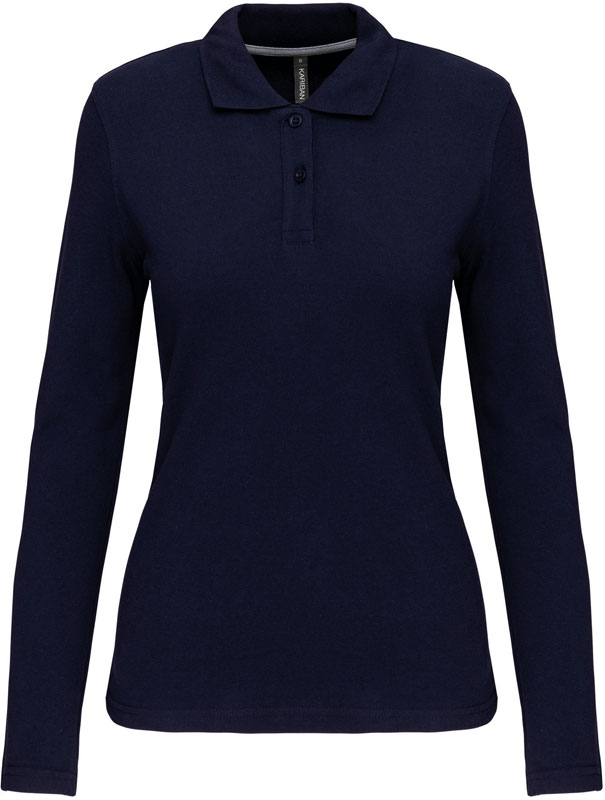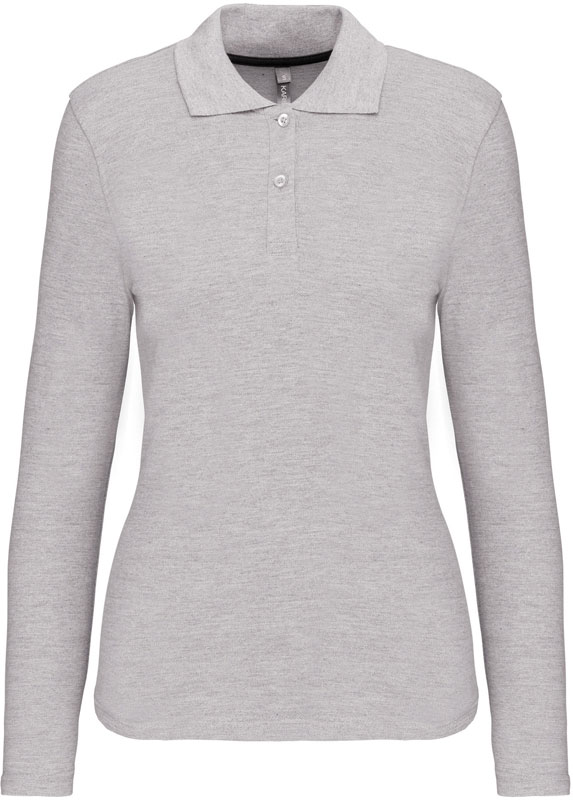Damen Piqué Polo langarm, Taillierter Schnitt, Rippstrickkragen, 2er Knopfleiste, Doppelnähte, Zierband in Kontrastfarbe im Kragen und an den Seitenschlitzen, 60° waschbar (oxford grey: 40°), trocknergeeignet bei niedriger Temperatur, nicht chemisch reinigen, Material: 220g/m², 100% gekämmte Baumwolle, oxford grey: 90% gekämmte Baumwolle, 10% Viskose, Größen: S,M,L,XL,XXL,3XL