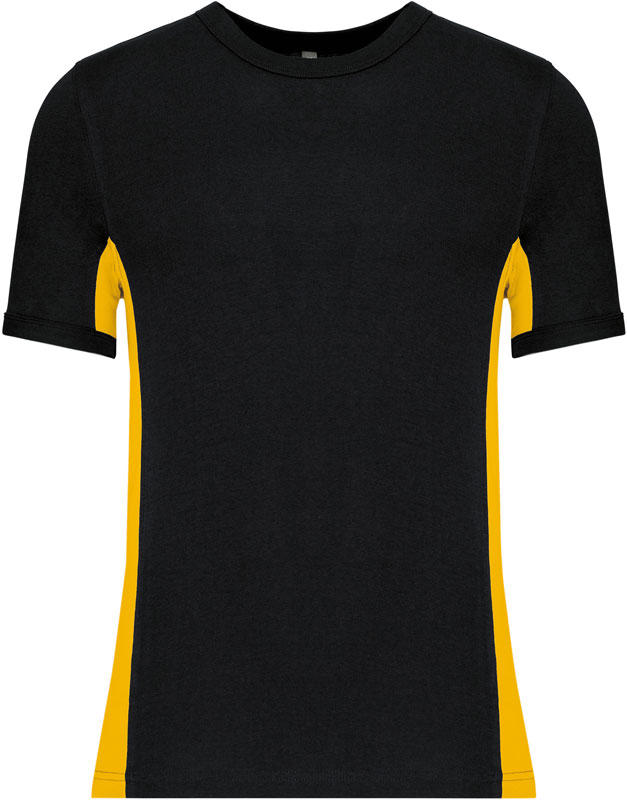 2-farbiges T-Shirt „Tiger“, Rundhalsausschnitt und Armabschlüsse mit Elasthan, Doppelnähte an Ärmeln und Bund, Streifen in Kontrastfarbe seitlich, 40° waschbar, trocknergeeignet bei niedriger Temperatur, Material: 165g/m², 100% Baumwolle, Größen: S,M,L,XL,XXL,3XL