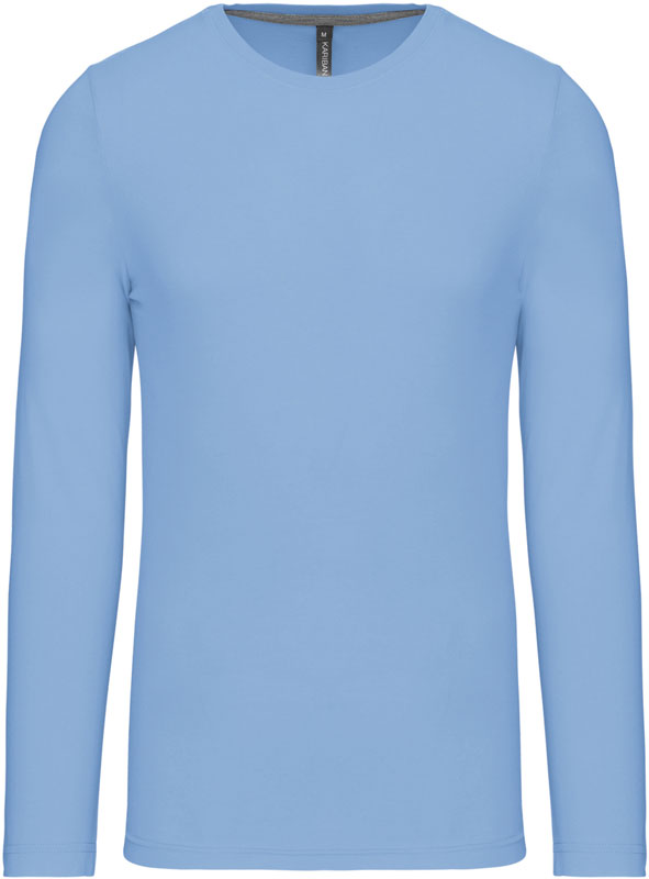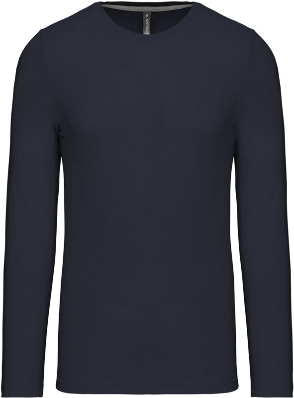 Herren T-Shirt langarm, Taillierter Schnitt, schmal eingefasster Ausschnitt, graues Nackenband bei farbigen und Ton-in-Ton bei weißen Shirts, Doppelnähte, 40° waschbar, trocknergeeignet bei niedriger Temperatur, nicht chemisch reinigen, Material: 180g/m², 100% gekämmte Baumwolle, enzymgewaschen, Single Jersey, oxford grey: 90% gekämmte Baumwolle, 10% Viskose, Größen: S,M,L,XL,XXL,3XL,4XL