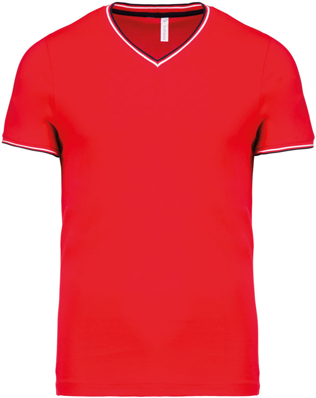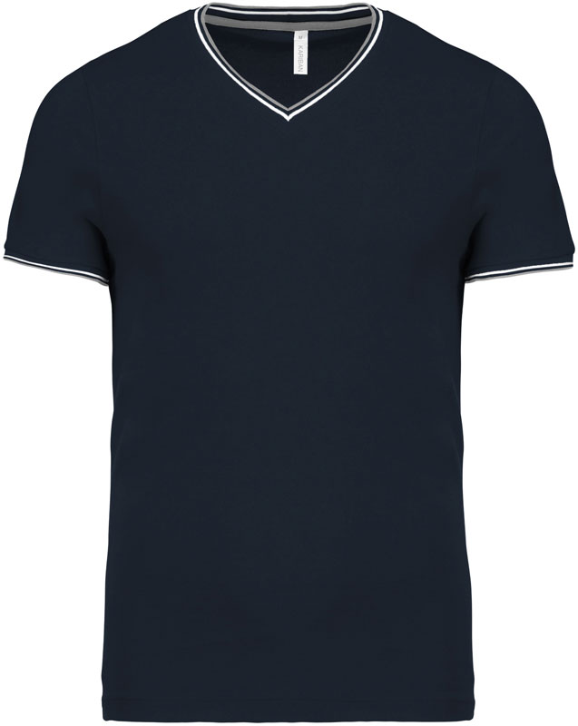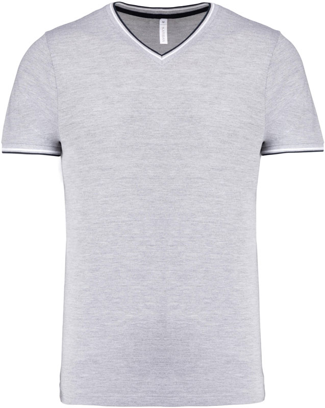 Herren Piqué V-Ausschnitt T-Shirt, Nackenband und Seitenschlitze in Kontrastfarbe, Doppelnähte am Saum, Streifen in Kontrastfarbe an Kragen und Bündchen in Rippstrick, 40° waschbar, nicht trocknergeeignet, nicht chemisch reinigen, Material: 170g/m², 100% gekämmtes Baumwollpiqué, oxford grey: 90% Baumwolle, 10% Viskose, Größen: S,M,L,XL,XXL,3XL
