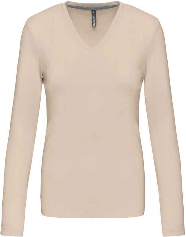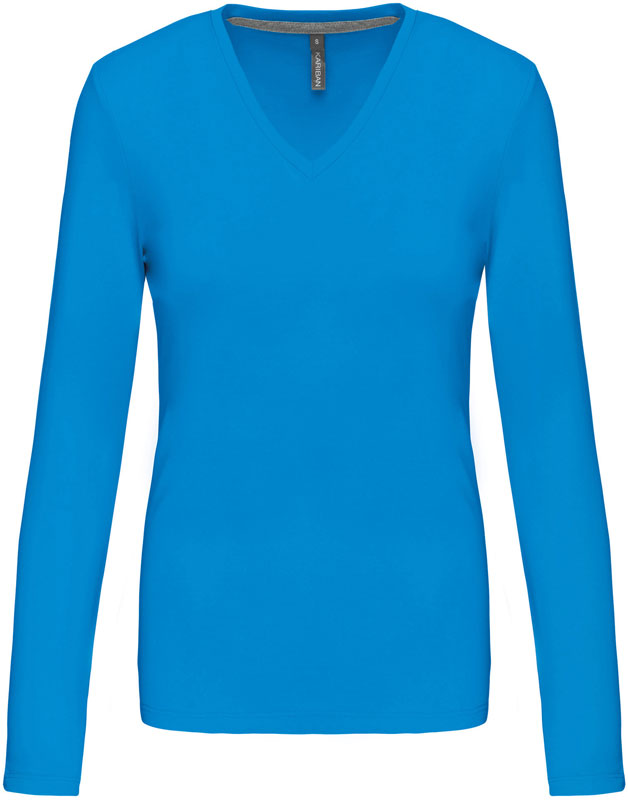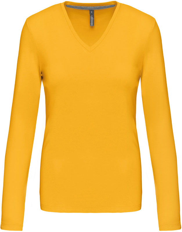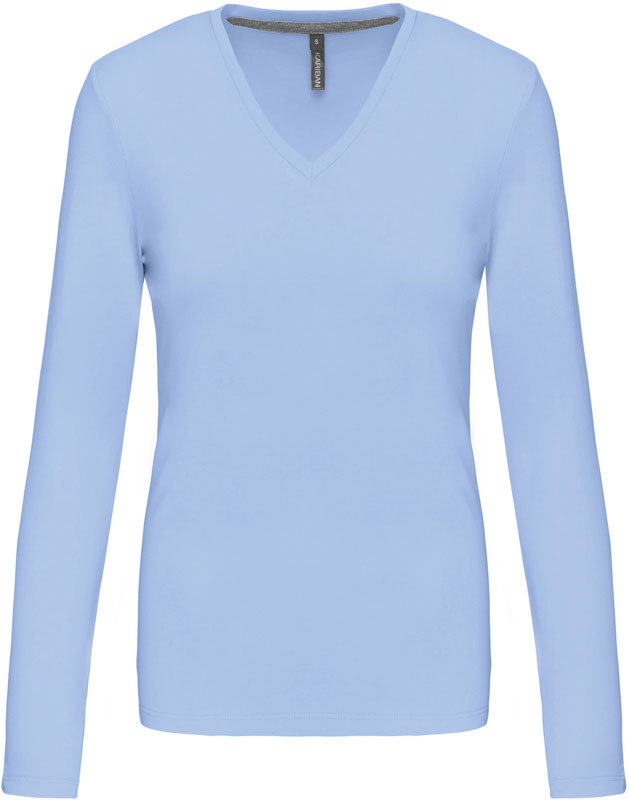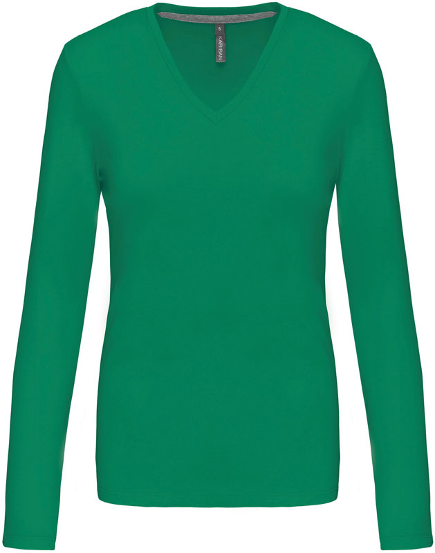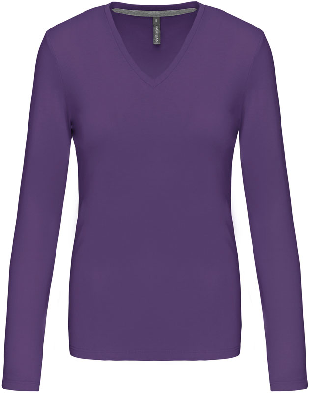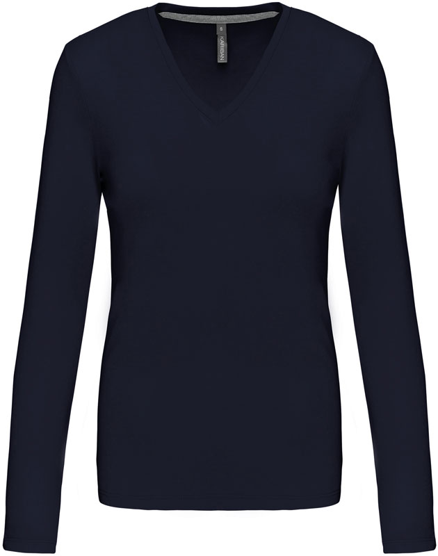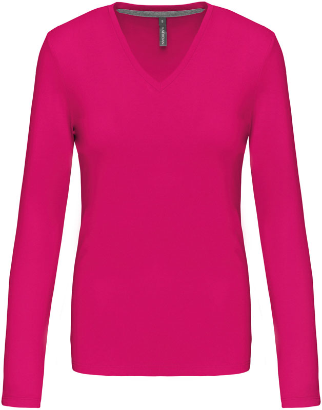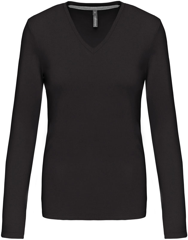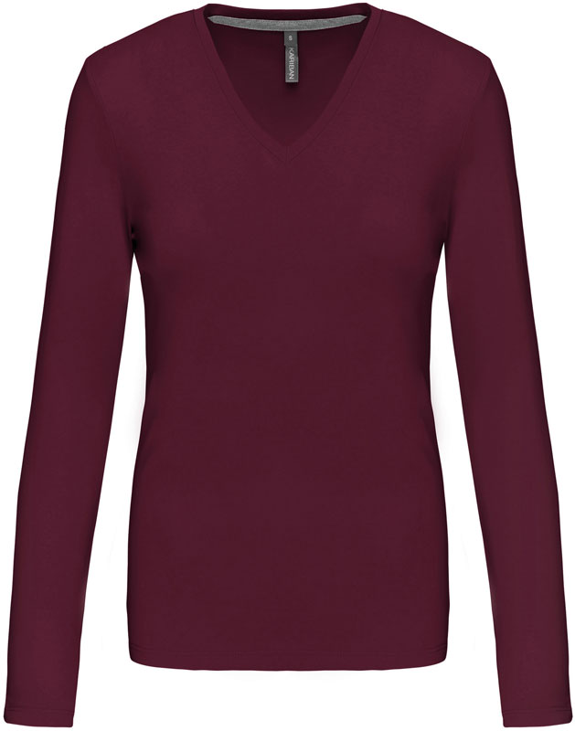 Damen V-Ausschnitt T-Shirt langarm, Taillierter Schnitt, schmal eingefasster V-Ausschnitt, Nackenband in Kontrastfarbe (grau) bei farbigen und weiß bei weißen Shirts, Doppelnähte, 40° waschbar, trocknergeeignet bei niedriger Temperatur, nicht chemisch reinigen, Material: 180g/m², 100% gekämmte Baumwolle, enzymgewaschen, oxford grey: 90% gekämmte Baumwolle, 10% Viskose, Größen: S,M,L,XL,XXL,3XL