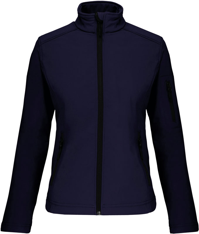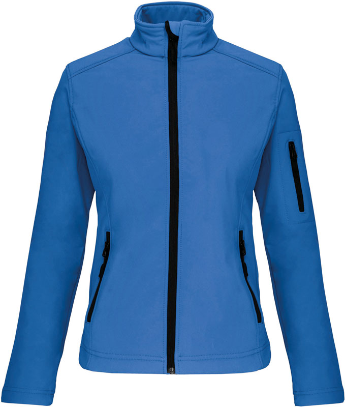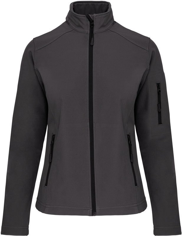 Damen 3-Lagen Softshell Jacke, 3-lagiges Material, wasserdicht (8.000mm Wassersäule), atmungsaktiv (3.000g/m² in 24h), durchgehender Qualitäts-Reißverschluss, 1 Ärmeltasche mit Reißverschluss links, 2 Vordertaschen mit Reißverschluss, 40° waschbar, nicht trocknergeeignet, nicht chemisch reinigen, Material: Außen: 300g/m², 95% Polyester, 5% Elasthan, Mittelschicht: atmungsaktives Material, Innen: Microfleece, Größen: S,M,L,XL,XXL,3XL,4XL