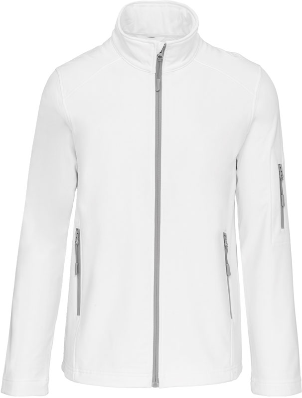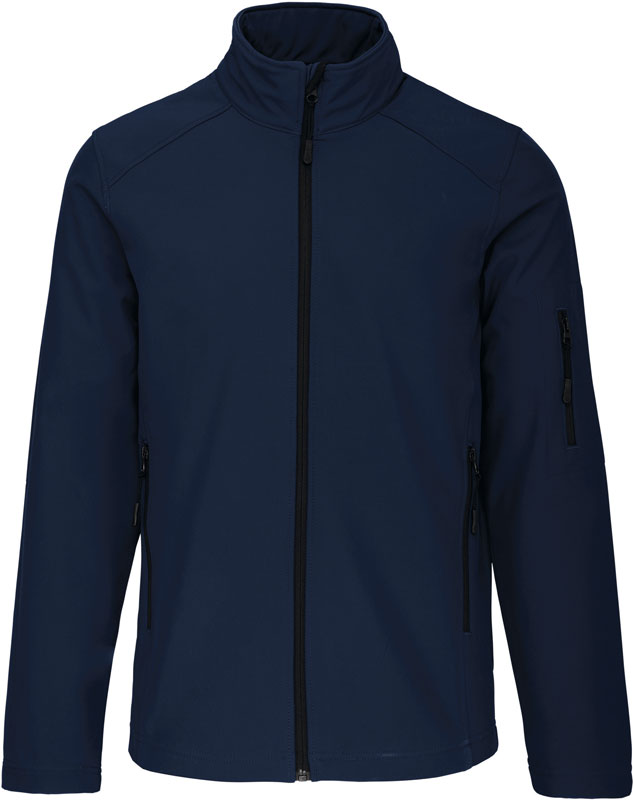Herren 3-Lagen Softshell Jacke, 3-lagiges Material, wasserdicht (8.000mm Wassersäule), atmungsaktiv (3.000g/m² in 24h), durchgehender Qualitäts-Reißverschluss, 1 Ärmeltasche mit Reißverschluss links, 2 Vordertaschen mit Reißverschluss, 40° waschbar, nicht trocknergeeignet, Material: Außen: 300g/m², 95% Polyester, 5% Elasthan, Mittelschicht: atmungsaktives Material, Innen: Microfleece, Größen: S,M,L,XL,XXL,3XL,4XL