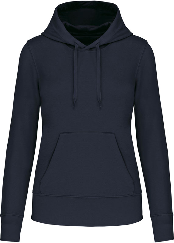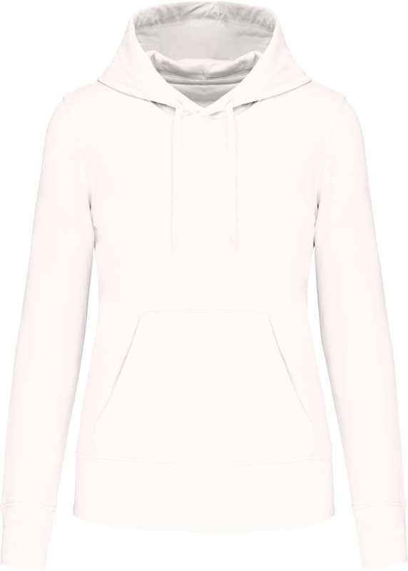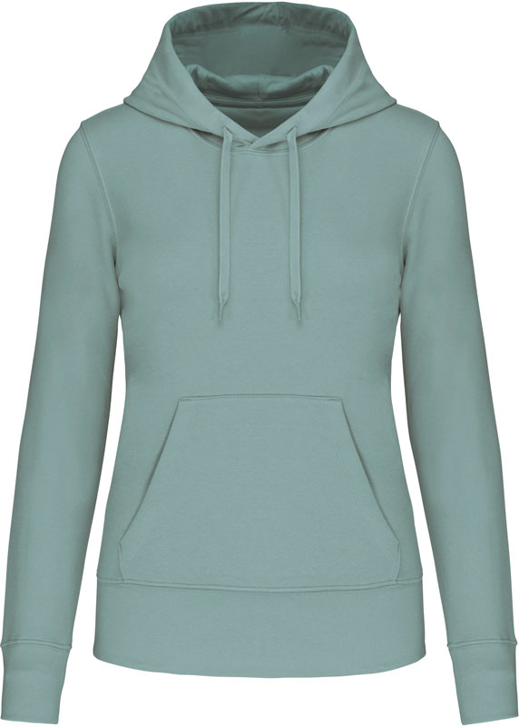 Umweltfreundlicher Damen Kapuzen Sweater, Gerader Schnitt, Single Jersey-Nackenband Ton-in-Ton, Halbmond im Nacken, Rippstrickbündchen an Ärmel und Saum, Kängurutasche, Doppelnähte an Hals, Ärmeln und Bund, LSF (low shrinkage fleece) für geringeres Einlaufen, 3-fädige Sweat-Qualität, vegan, neutrales Größenlabel, 40° waschbar, optimale Form- und Waschbeständigkeit, trocknergeeignet bei niedriger Temperatur, nicht chemisch reinigen, Material: 280g/m², 85% gekämmte zertifizierte Bio-Baumwolle, 15% recyceltes Polyester, enzymgewaschen, Kapuzenfutter: 100% gekämmte zertifizierte Bio-Baumwolle, Single Jersey, Größen: XS,S,M,L,XL,XXL