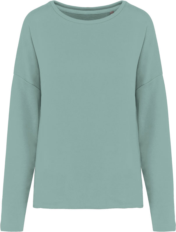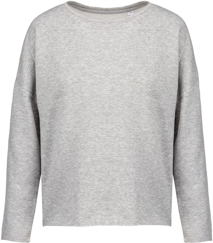 Damen Oversize Sweater, Weiter legerer Schnitt, großer Halsausschnitt, Fischgrät-Nackenband, ungesäumter Abschluss unten, Doppelnähte am Ärmelbündchen, neutrales Größenlabel, 40° waschbar, nicht trocknergeeignet, nicht chemisch reinigen, Material: 270g/m², 91% Baumwolle, 9% Polyester, light grey heather: 87% Baumwolle, 9% Polyester, 4% Viskose, French Terry (innen nicht angeraut), Größen: S/M,L/XL