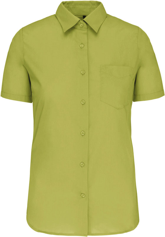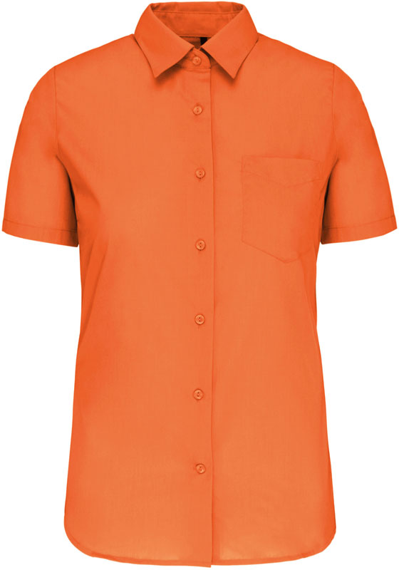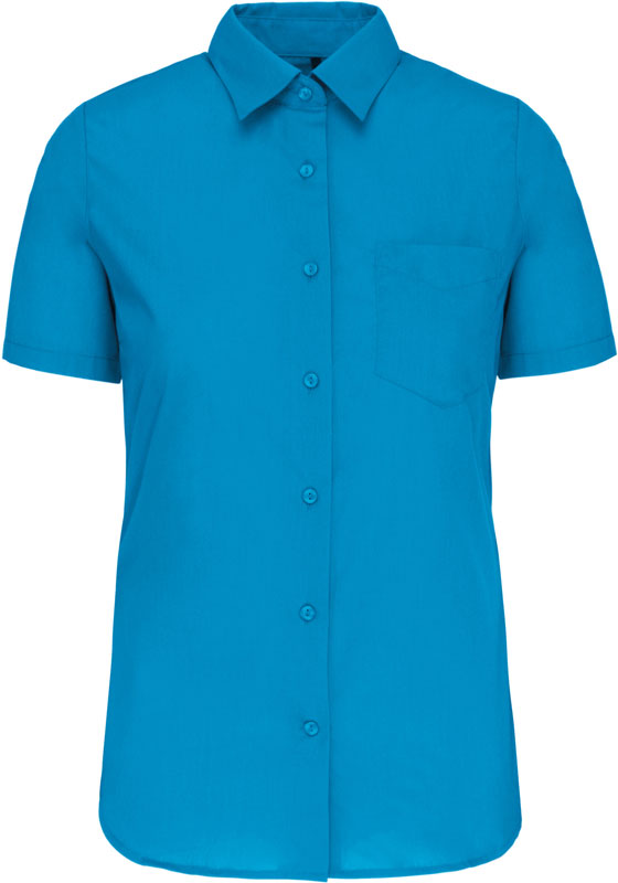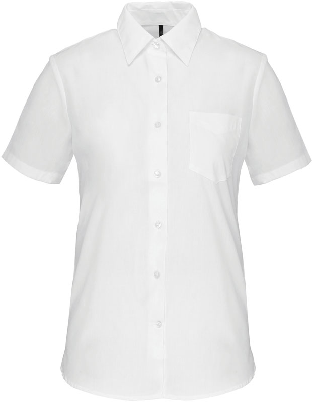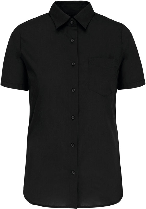 Popeline Bluse „Judith“ kurzarm, Klassischer knopfloser Kragen, abgerundeter Saum, Knöpfe Ton-in-Ton, 1 Ersatzknopf, Brusttasche links, pflegeleichter Stoff, 40° waschbar, nicht trocknergeeignet, Material: 110g/m², 65% Polyester, 35% Baumwolle, Größen: XS,S,M,L,XL,XXL,3XL,4XL