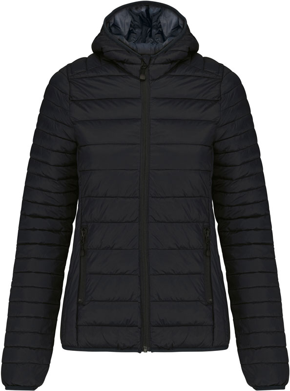 Leichte Damen Kapuzen Steppjacke, Taillierter Schnitt, Kragen mit Kapuze, Futter und Kapuze innen in Kontrastfarbe (außer bei navy), 2 Seitentaschen mit Reißverschluss, Seiteneinsätze mit Längssteppung, im Tragebeutel verstaubar, 40° waschbar, nicht trocknergeeignet, nicht chemisch reinigen, Material: 340g/m², Außen: 100% Polyamid, Futter: 100% Polyester, Größen: XS,S,M,L,XL,XXL