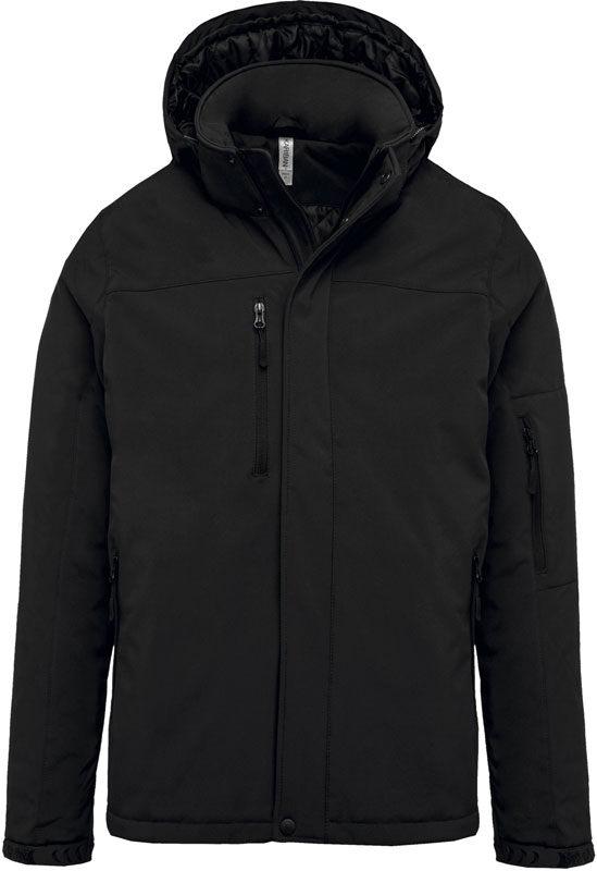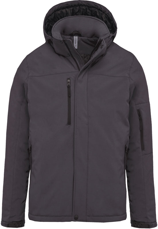 Herren 3-Lagen Kapuzen Softshell Parka, 3-lagiges Material, wasserdicht (8.000mm Wassersäule), atmungsaktiv (3.000g/m² in 24h), abnehmbare Kapuze mit Kordelzug, verstellbare Ärmelbündchen mit Klettverschluss, 2 Innentaschen mit Knopf, Ärmeltasche mit Reißverschluss, 2 Seitentaschen und 1 Brusttasche mit Reißverschluss, gestepptes Futter mit Fleece, Veredelungszugang an Rücken und linker Brust, Material: Außen: 95% Polyester, 5% Elasthan, Mittelschicht: atmungsaktive Membran, Innen: Microfleece, Größen: S,M,L,XL,XXL,3XL,4XL