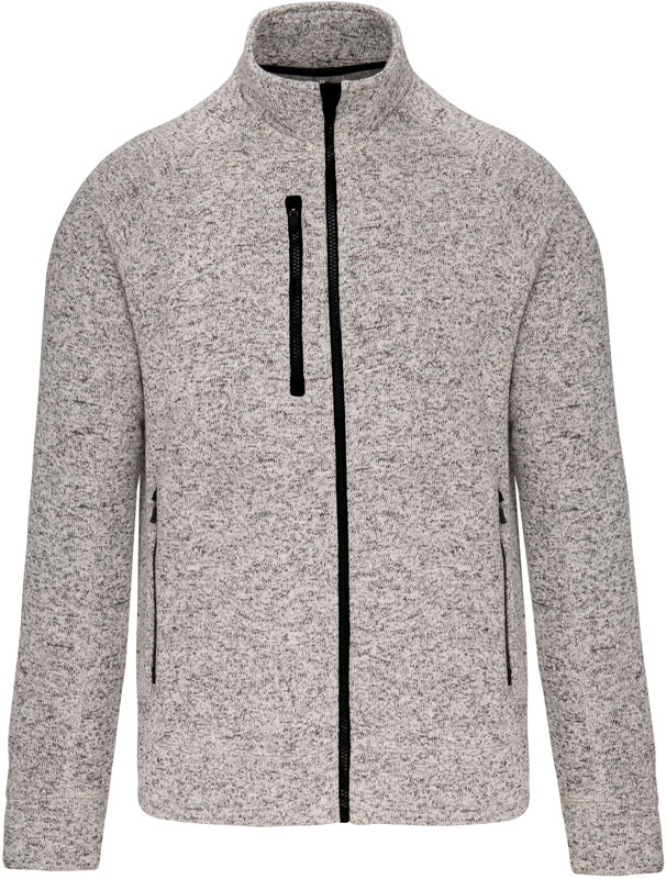 Herren Melange Strickfleece Jacke, Raglanärmel, Brusttasche mit Reißverschluss, 2 Seitentaschen mit Reißverschluss, Überdecknaht an den Einsätzen, Reißverschlüsse in Kontrastfarbe, weich und warm, innen angeraut, 40° waschbar, nicht trocknergeeignet, nicht chemisch reinigen, Material: 345g/m², 100% Polyester, Größen: S,M,L,XL,XXL,3XL,4XL