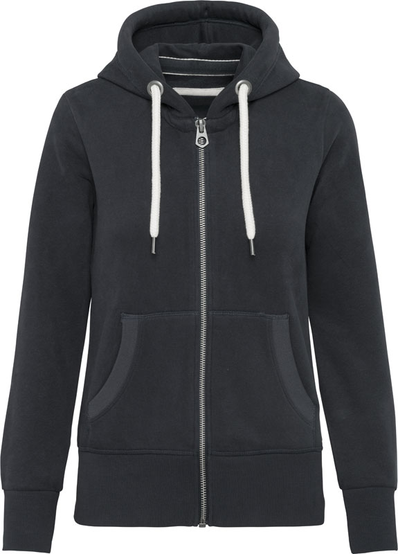 Damen Vintage Kapuzen Sweatjacke, Gefütterte Kapuze, Kordel in Kontrastfarbe, doppeltes Fischgrät-Nackenband, Strickbündchen an Ärmel und Saum, Metallreißverschluss, Kängurutaschen, spezielle Behandlung für einen „ausgewaschenen“ Look – dieser Prozess führt zu Farbabweichungen, neutrales Größenlabel, 40° waschbar, trocknergeeignet bei niedriger Temperatur, nicht chemisch reinigen, Material: 350g/m², 80% Baumwolle, 20% Polyester, ash heather: 79% Baumwolle, 20% Polyester, 1% Viskose, Soft-Touch, Größen: XS,S,M,L,XL,XXL