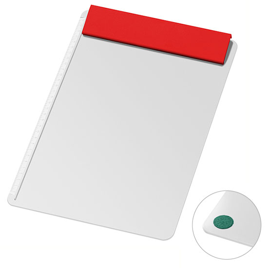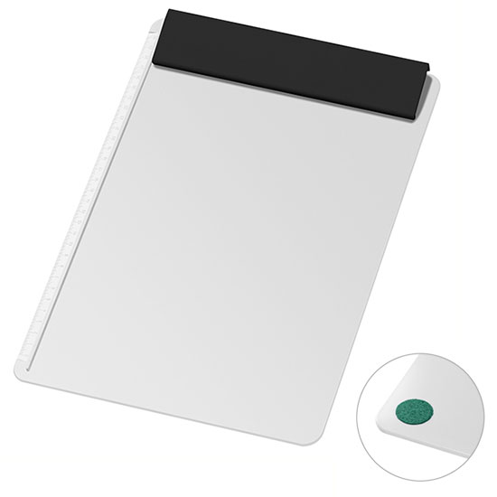 mit Klemmleiste, seitlichem Anschlag und 30 cm Skala, ohne Papier, mit 4 geräuschdämpfenden Filzpunkten auf der Plattenrückseite, ohne Papier.