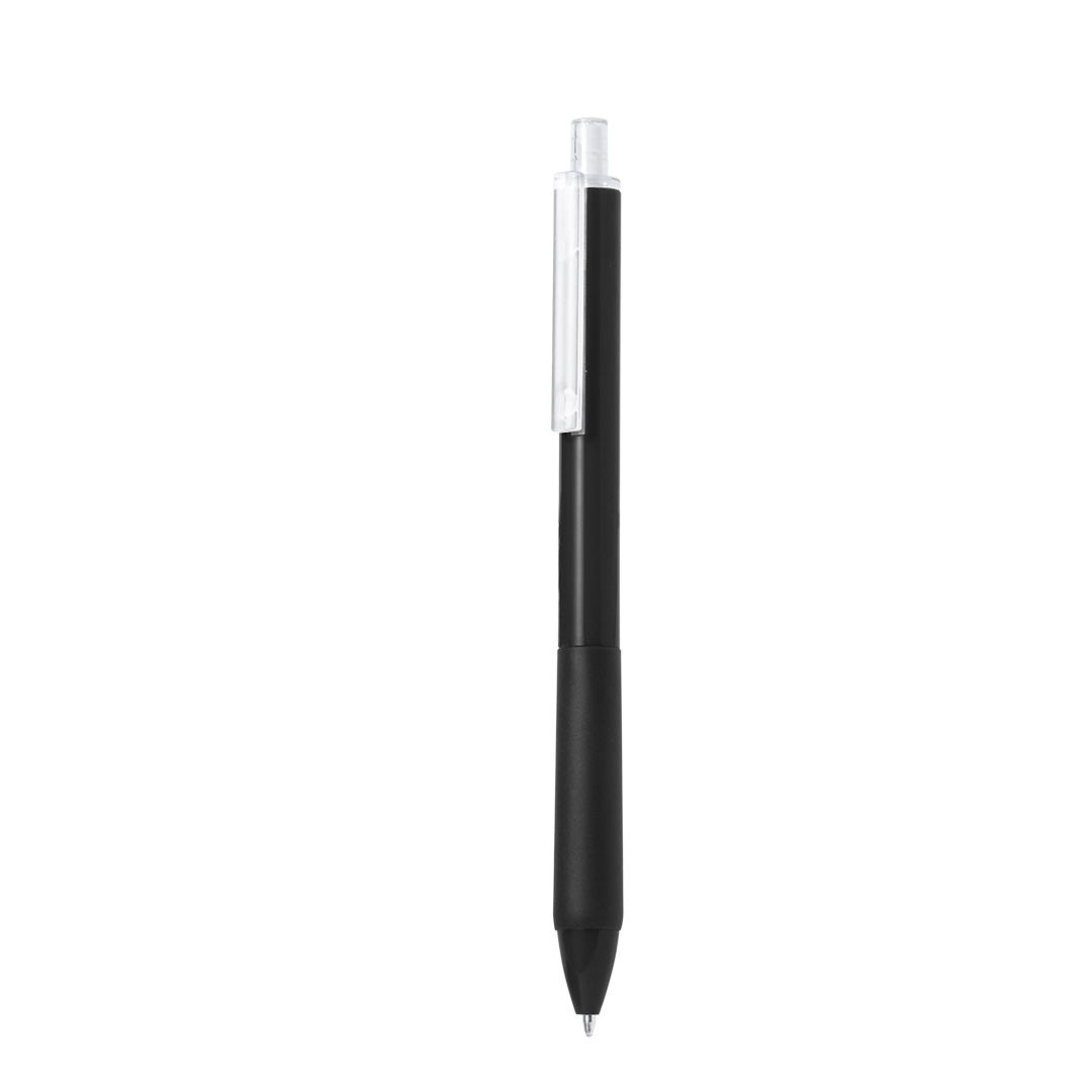 Druckknopf-Kugelschreiber aus recyceltem ABS. Transparenter Clip und Druckknopf, mit glattem Schaft in verschiedenen Farben und passendem Griffstück. Recyceltes ABS-Logo auf der Oberseite des Kugelschreibers. Mit blauer Tinte.RABS ist ein hochgradig recycelbarer und sehr widerstandsfähiger Kunststoff mit einer Vielzahl von Anwendungen, die ihn zu einer umweltfreundlichen Lösung machen. Mit RCS-Zertifizierung, die seine recycelte Herkunft garantiert.