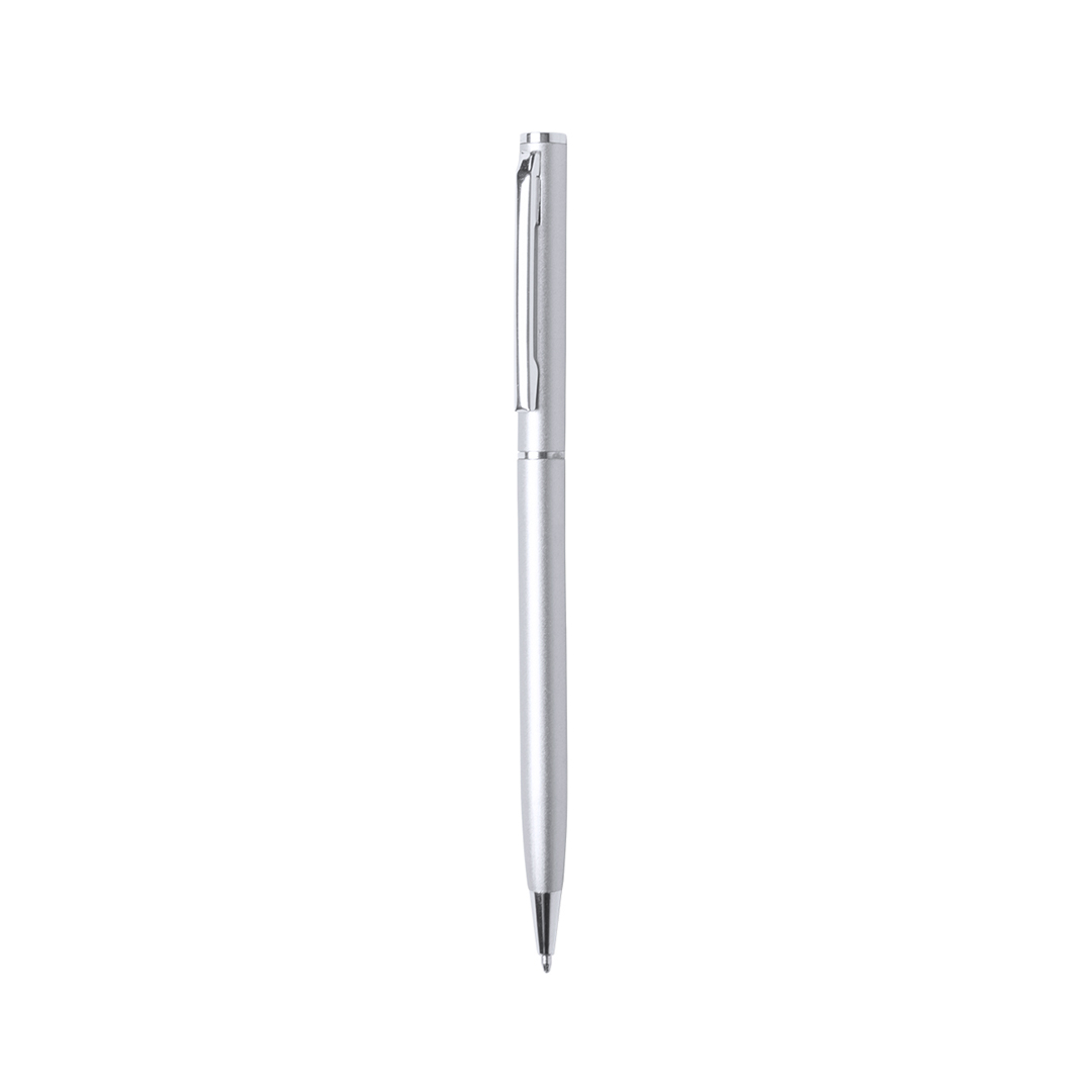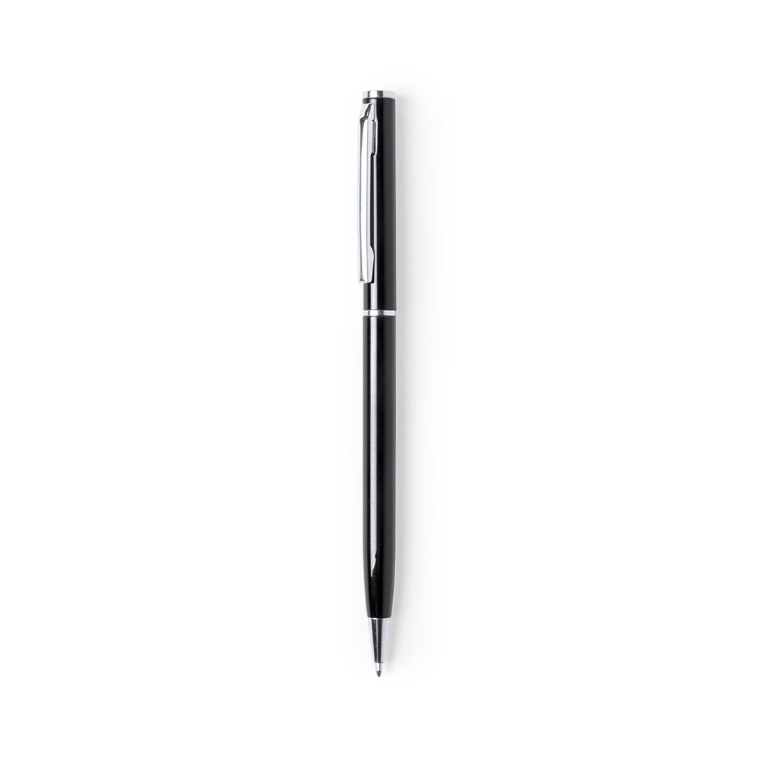 Kugelschreiber aus Aluminium, glänzend lackiert und mit Drehmechanik, mit verchromten Beschlägen und Ringen. Erhältlich in einer Vielzahl von Farben, mit blauer Tinte.