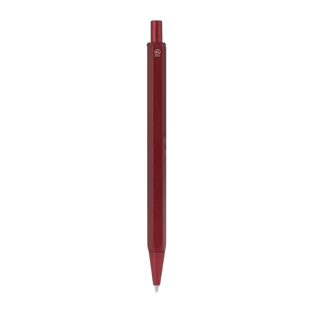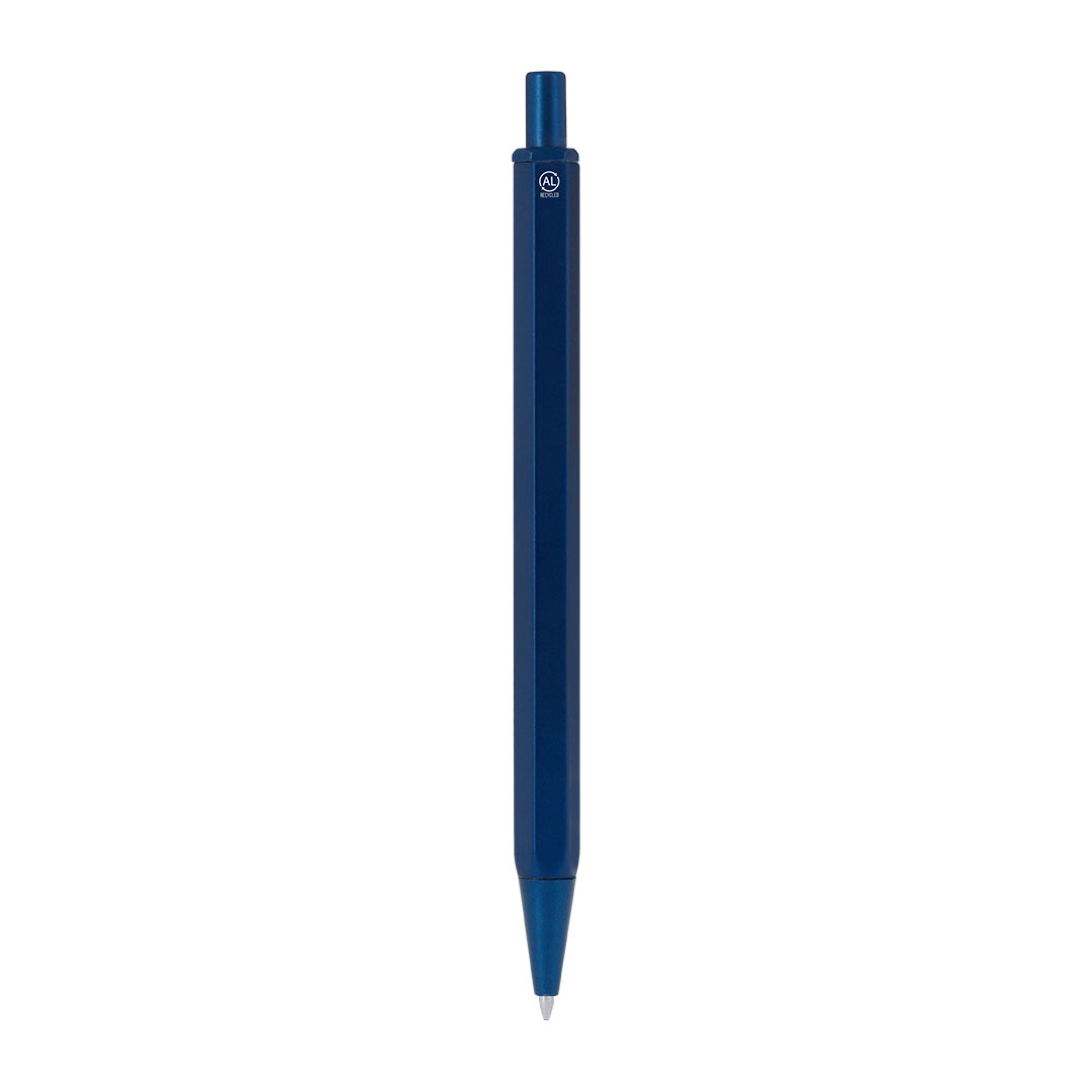 Eleganter Kugelschreiber aus recyceltem Aluminium. Mit markantem sechsseitigen Körper. Druckmechanismus aus recyceltem ABS und blauer Tinte. Mit markantem Logo für recyceltes Aluminium auf dem Stift.Recyceltes Aluminium ist ein Material mit nahezu unbegrenzten Recyclingmöglichkeiten, ohne seine ursprünglichen Eigenschaften zu verlieren und bei geringerem Energieverbrauch in diesem Prozess.GRS-Zertifizierung (Global Recycled Standard), die den Recyclingursprung des verwendeten Materials zur Herstellung des Produkts bestätigt.RABS ist ein hochgradig recycelbarer Kunststoff mit hoher Widerstandsfähigkeit und vielseitigen Anwendungen, der ihn zu einer umweltfreundlichen Lösung macht. Mit RCS-Zertifizierung, die den Recyclingursprung und mit RABS-Logo auf dem Stift bestätigt.