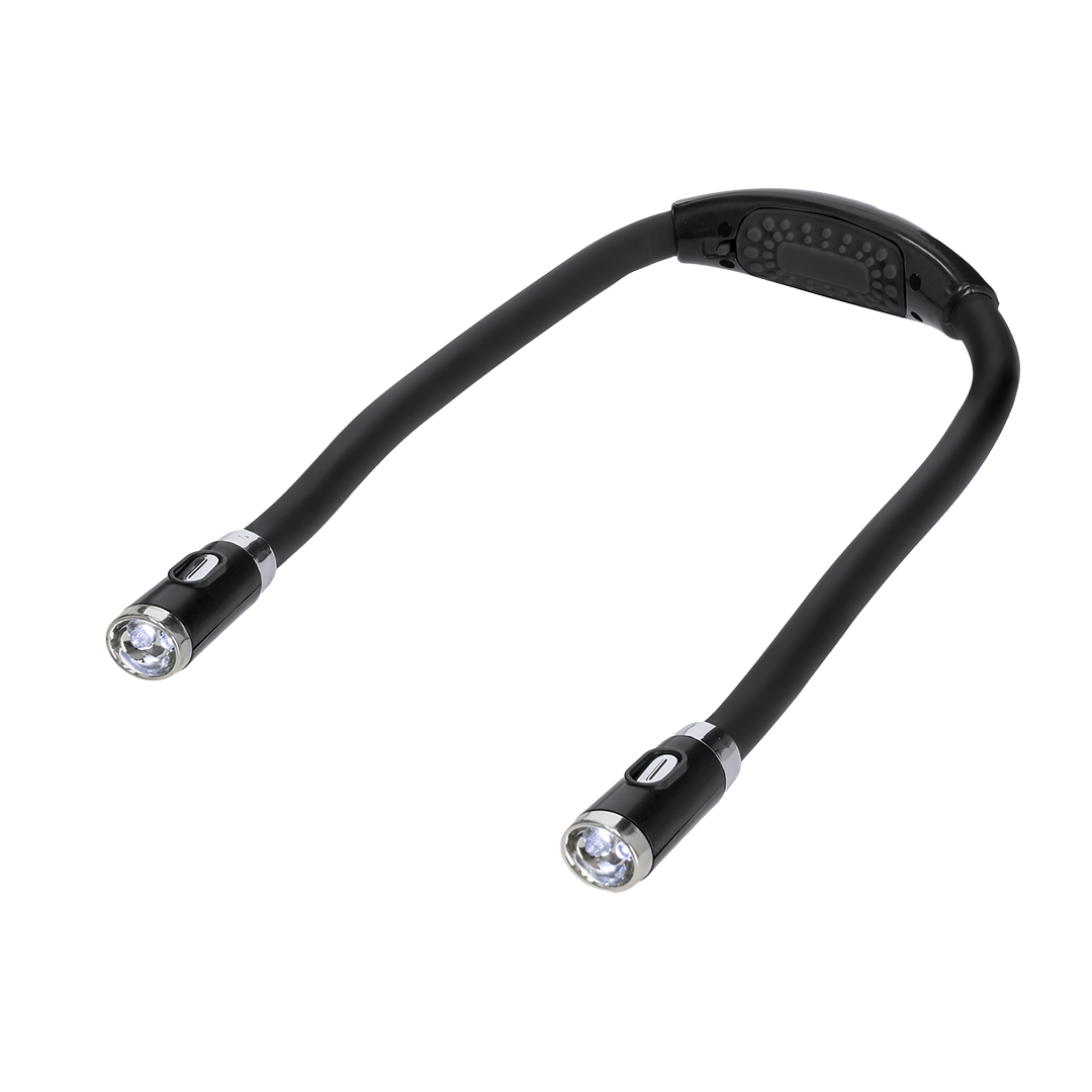 Lampe mit ergonomischem Design, hergestellt aus robustem ABS mit flexiblem Körper, um das Licht nach Bedarf auszurichten. Ausgestattet mit 4 LEDs, mit EIN/AUS-Schalter und betrieben mit 2 AAA-Batterien (nicht enthalten). Ideal für nächtliches Lesen, Präzisionsarbeiten, Reparaturen und Aktivitäten, bei denen fokussiertes Licht und freie Hände benötigt werden.