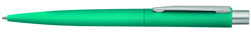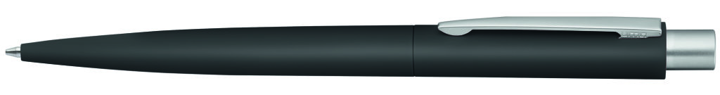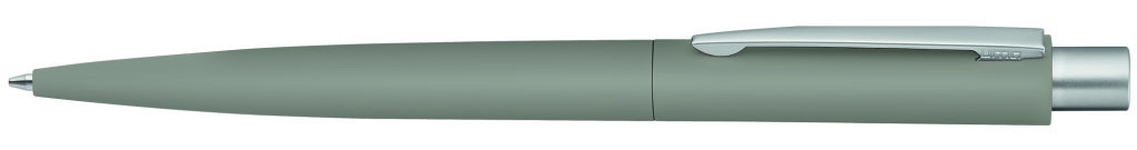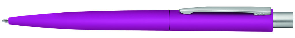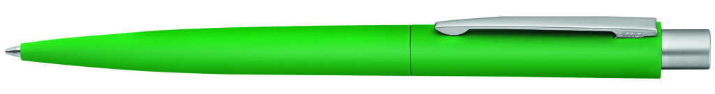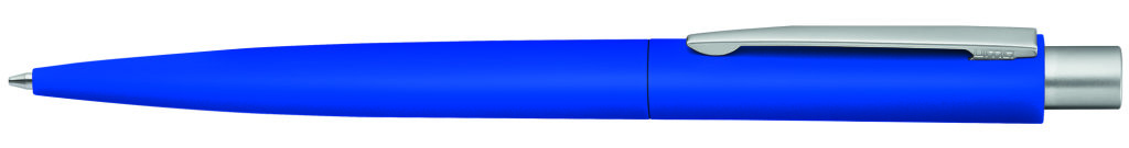 Metall-Druckkugelschreiber mit Softtouch-Gehäuse. Metallclip und Drücker matt verchromt. Minenfarbe: blau