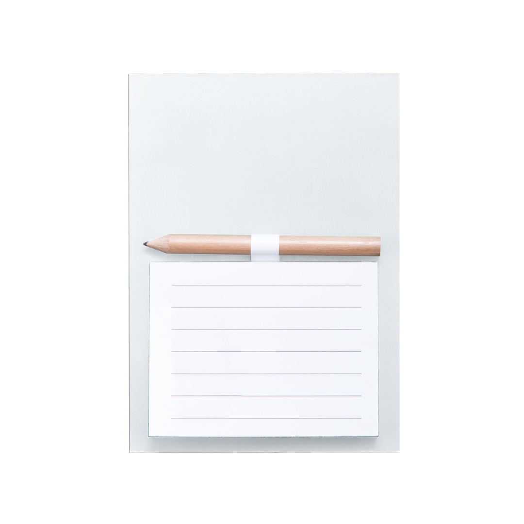 Magnet-Notizblock aus robustem Polypropylen (PP) in verschiedenen lebendigen Farben. Mit 40 linierten Blättern sowie Stifthalter für Mini-Bleistift (inklusive).