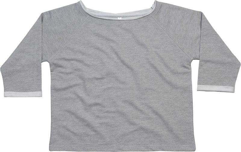 Damen Sweater „Flash Dance“, Weiter legerer Schnitt, weites Off-the-Shoulder Styling mit offenen Kanten am Ausschnitt, 3/4 Raglanärmel mit Rollkanten, gerader Saum mit Doppelnaht, TearAway Label, 40° waschbar, Material: 280g/m², 80% zertifizierte Bio-Baumwolle, 20% recyceltes Polyester, heather grey melange: 85% zertifizierte Bio-Baumwolle, 8% Polyester, 7% Viskose, Bio-Baumwolle oder in Umstellung auf Bio (IC 2), French Terry (innen nicht angeraut), Größen: S,M,L,XL