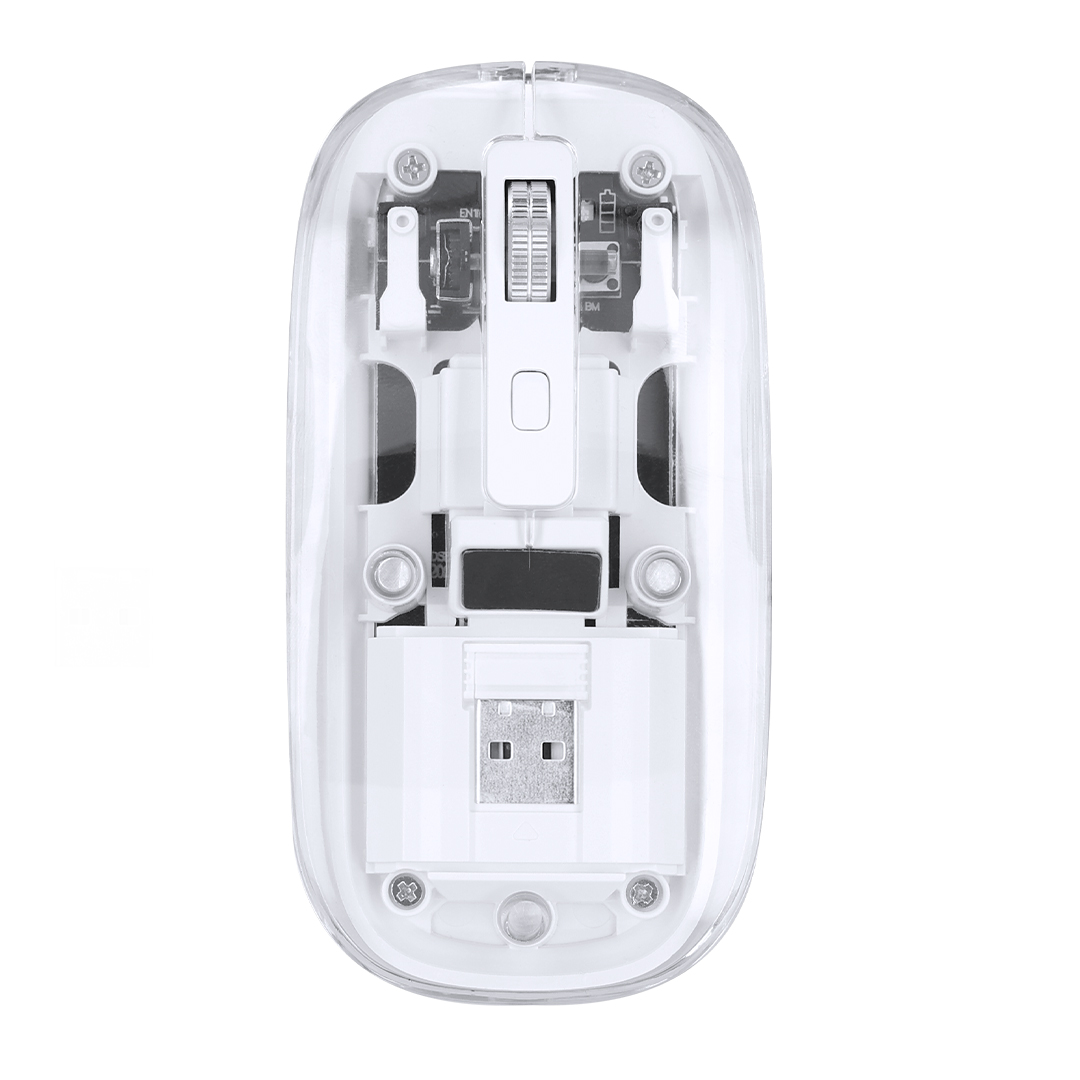 Drahtlose optische Maus in einem originellen Design, mit einer transparenten Darstellung der internen Komponenten des Geräts. Eingebauter 300 mAh Akku und Typ C Ladeanschluss (Kabel im Lieferumfang enthalten). Inklusive DPI-Taste, mit Plug-and-Play-USB-Anschluss und präsentiert in einer individuellen Kraft-Design-Box.
