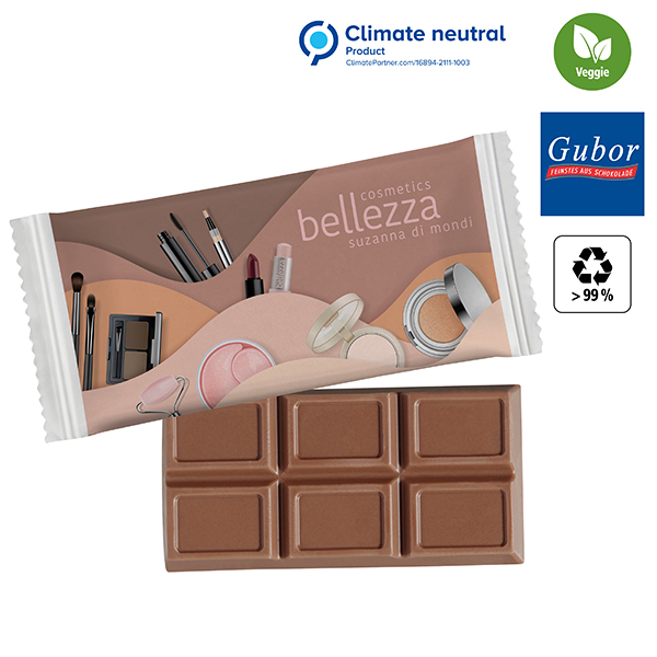 MAXI-Schokoladen-Täfelchen einzeln im Papierwerbeflowpack verpackt.