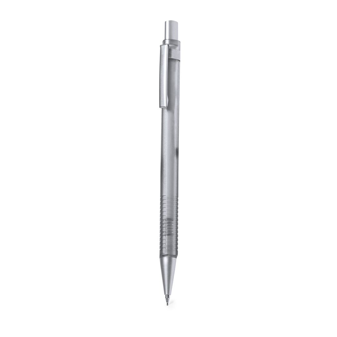 Stilvoller Druckbleistift aus robustem ABS. Durchscheinender grauer Schaft und passender strukturierter Griff, mit verchromtem Druckknopf, Clip und Spitze. Mit Radiergummi und 0,7-mm-Minen im Lieferumfang enthalten.