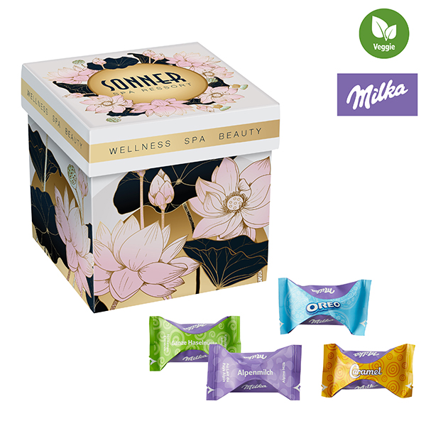Stabile und dekorative Überraschungsbox mit Servierschalenfunktion zur bequemen Entnahme des süßen Inhalts. Der ideale Energielieferant für’s Homeoffice, Meetings oder als kleine Aufmerksamkeit zur Begrüßung.