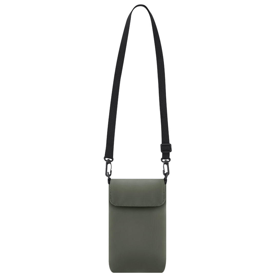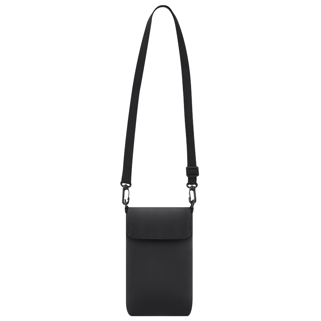 Federmäppchen aus weicher PU. Hauptfach mit Klappenverschluss und Klettverschluss. Beinhaltet flachen, verstellbaren Gurt mit doppelt schwenkbarem Karabinerhaken.