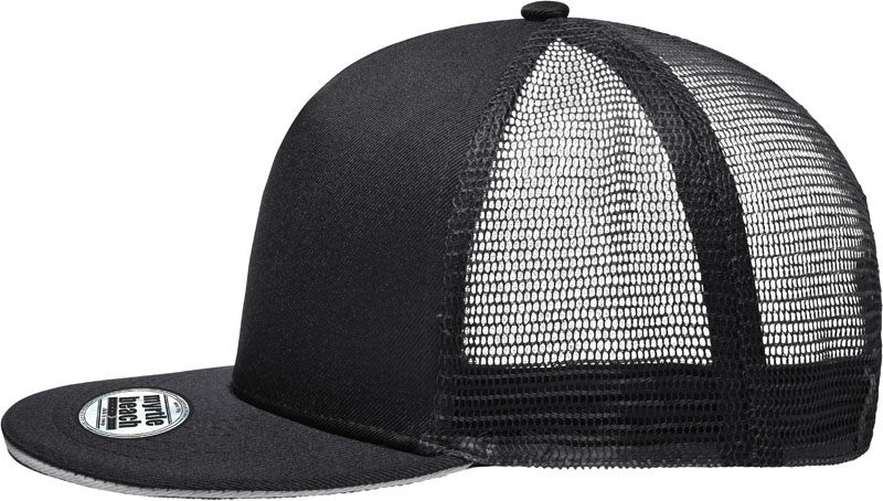5 Panel Pro Mesh Kappe, Hochprofil Form, gerades Schild mit Sticker und 6 Ziernähten, wattiertes Schweißband, Frontpanel verstärkt, 6 gestickte Luftlöcher, Größenregulierung durch „click&snap“ Verschluss, 40° waschbar, nicht bügeln, nicht trocknergeeignet, Material: 100% Polyester, Größe: onesize