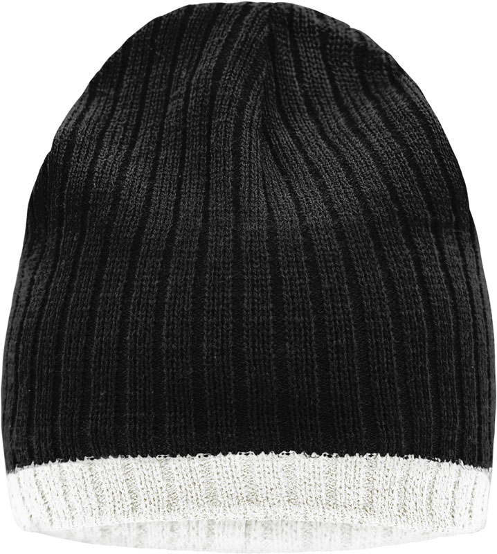 Strickmütze, Innenseite mit Fleeceband für angenehmen Tragekomfort, Streifen in Kontrastfarbe, schwarz auch als Uni-Farbe erhältlich, Rippstrick-Optik, 40° waschbar, Handwäsche, nicht bügeln, nicht trocknergeeignet, Material: 52g, 100% Polyacryl, Fleece Besatz: 100% Polyester, Größe: onesize