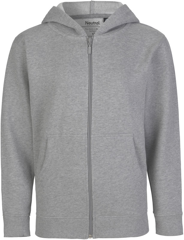 Kinder Bio Kapuzen Sweatjacke, 2-lagige Kapuze ohne Kordel, Rippstrickbündchen an Ärmel und Saum, YKK Reißverschluss, Kängurutasche, innen angeraut, 40° waschbar, trocknergeeignet bei niedriger Temperatur, Material: 300g/m², 100% gekämmte ringgesponnene zertifizierte Bio-Baumwolle, Fair Trade, Größen: 92/98,104/110,116/122,128/134,140/146,152/158