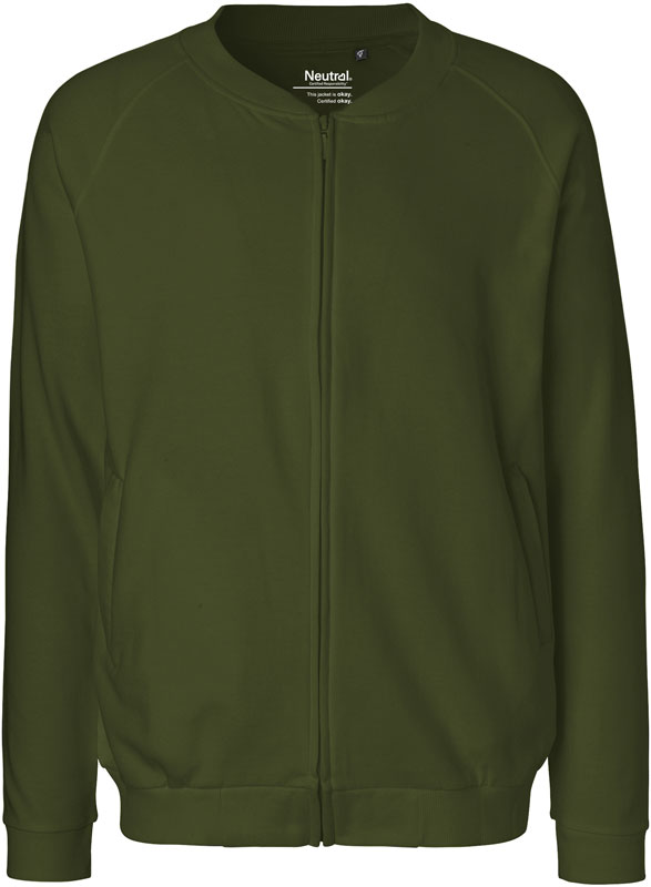 Unisex Bio Sweatjacke, Nackenband, Raglanärmel, Rippstrickbündchen an Ärmel und Saum, verdeckter YKK Reißverschluss, 2 Seitentaschen, innen angeraut, 40° waschbar, trocknergeeignet bei niedriger Temperatur, Material: 300g/m², 100% gekämmte ringgesponnene zertifizierte Bio-Baumwolle, Fair Trade, Größen: XS,S,M,L,XL,XXL,3XL