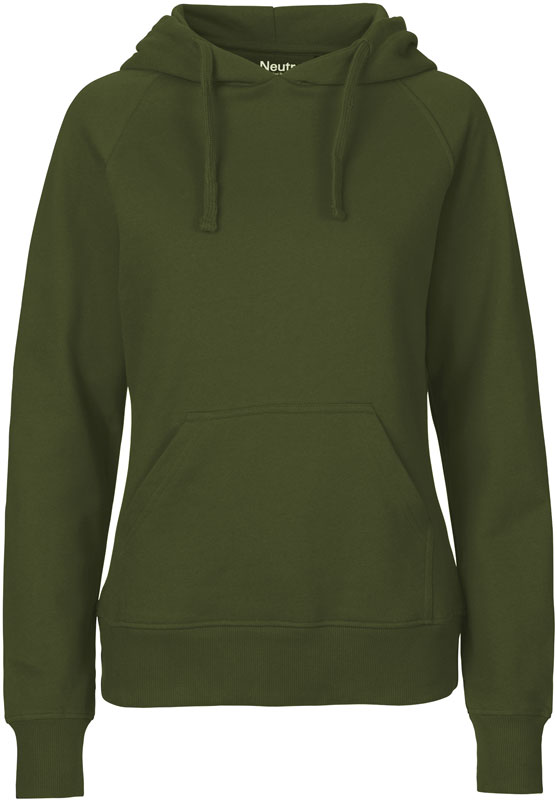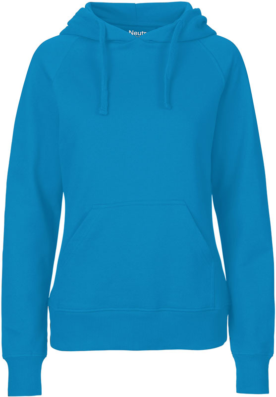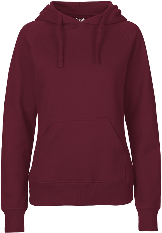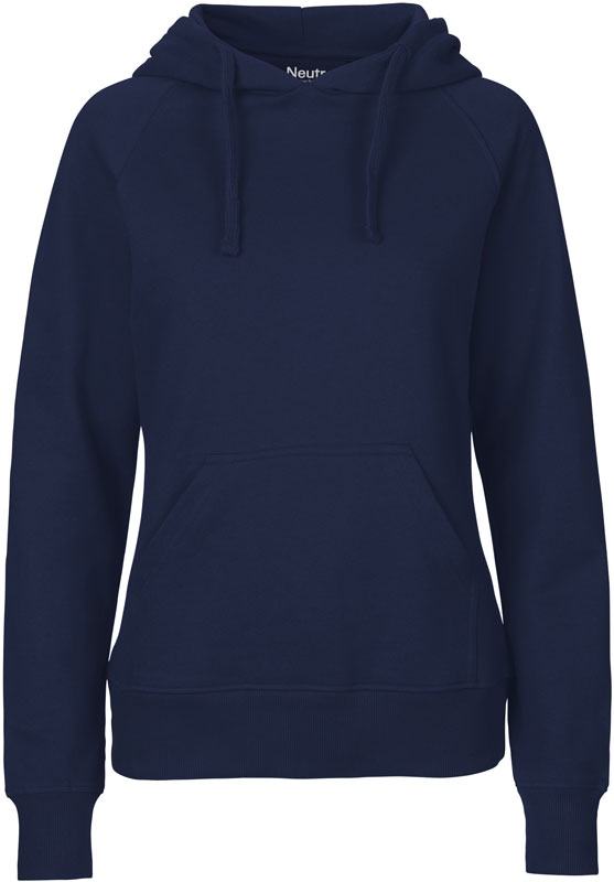 Damen Bio Kapuzen Sweater, Legerer Schnitt, 2-lagige Kapuze mit Kordelzug, Nackenband, Raglanärmel, Rippstrickbündchen an Ärmel und Saum, Kängurutasche, innen angeraut, 40° waschbar, trocknergeeignet bei niedriger Temperatur, Material: 300g/m², 100% gekämmte ringgesponnene zertifizierte Bio-Baumwolle, Fair Trade, Größen: XS,S,M,L,XL,XXL