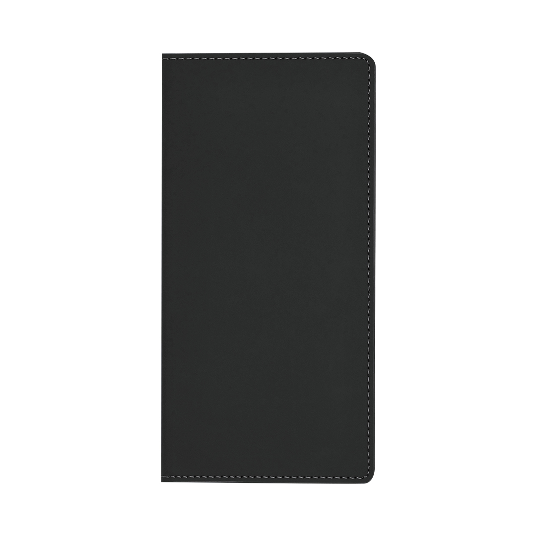 Notizblock mit starren Einschlägen aus recyceltem Kunstleder. Auf der Rückseite befinden sich praktische Aufbewahrungstaschen. Innenraum mit 50 gestreiften Grundrissblättern. Mit Emblem aus recyceltem Kunstleder.