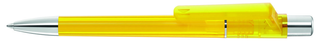 Druckkugelschreiber mit transparent glänzendem Gehäuse, Metallzierring, Drücker und schwere Metallspitze glanzverchromt. BlackForestPen – Designed in Deutschland, gefertigt in der Schweiz, zusammengefügt und veredelt im Schwarzwald. Minenfarbe: blau