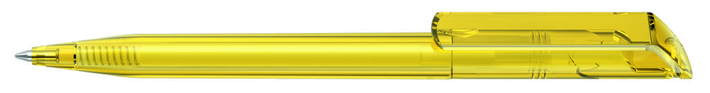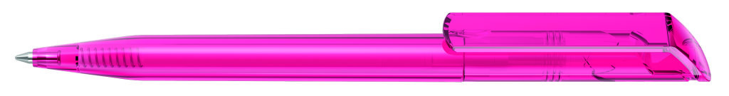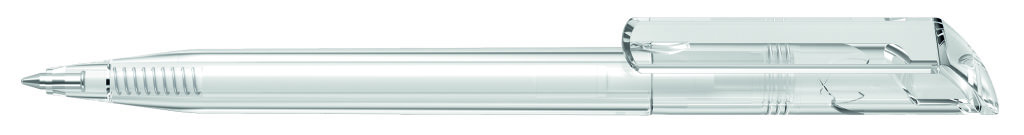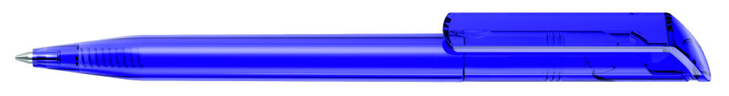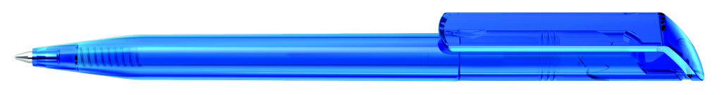 Drehkugelschreiber mit transparent glänzendem Gehäuse. Minenfarbe: blau