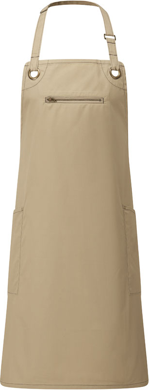 Latzschürze mit Seitentaschen „Barley“, Brusttasche mit Reißverschluss, 2 Seitentaschen, Taschenmaß: 24x17cm, Nähte in Kontrastfarbe, Stoffbänder: 90cm lang, Stoffband mit Messingschnalle als Verschluss, Ösen und Nieten Details, Länge: 86cm, Breite: 72cm, Easy Care, Industriewäsche 85° waschbar, 60° waschbar, trocknergeeignet bei niedriger Temperatur, nicht chemisch reinigen, Material: 195g/m², 65% recyceltes Polyester, 35% nachhaltige Baumwolle, Größe: onesize