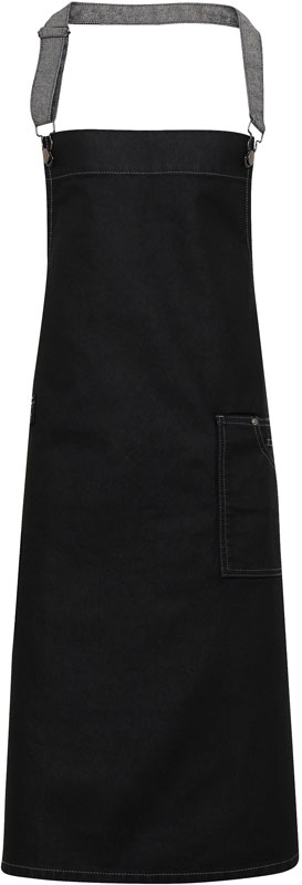Denim Latzschürze „District“, Wasserabweisende Eigenschaften, verstellbares Nackenband mit Schnalle im Hosenträger Stil, aufgesetzte Tasche und Tuchhalter, Taschenmaß: 18x20cm, Nähte und funktionale Elemente in Kontrastfarbe, gewachste Optik, 100cm lange Bindebänder mit Metallösen, OEKO-TEX® Standard 100, Länge: 86cm, Breite: 72cm, Easy Care, 60° waschbar, nicht trocknergeeignet, Material: 350g/m², 100% Baumwoll-Denim-Twill mit Acrylbeschichtung, Größe: onesize