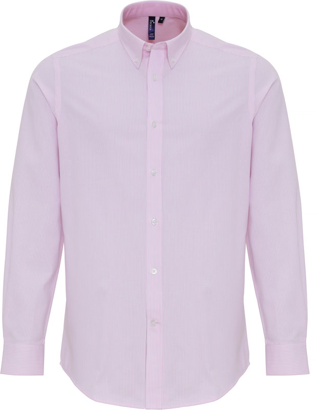 Oxford Hemd Streifen langarm, Klassischer Schnitt, Button-Down-Kragen, Nackenband und Ärmelbündchen mit Innenseite in Kontrastfarbe, 2-Knopf Manschette, abgerundeter Saum, knitterfrei, Easy Care, 40° waschbar, nicht trocknergeeignet, Material: 135g/m², 60% Baumwolle, 40% Polyester, Größen: S,M,L,XL,XXL,3XL