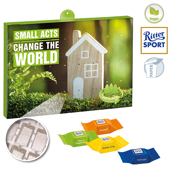 Premium Präsent-Adventskalender „Eco“ BUSINESS mit Ritter Sport Schokowürfeln
