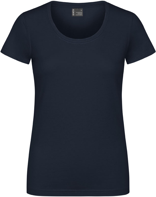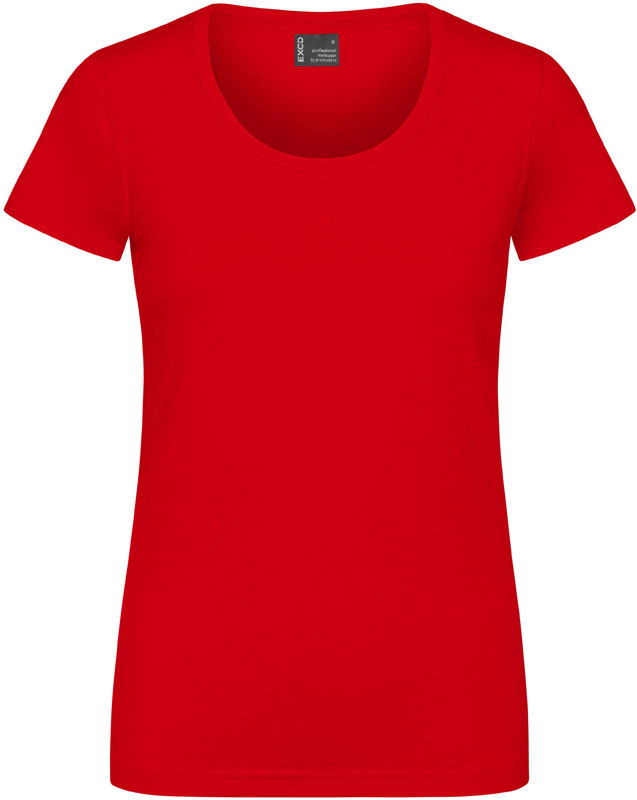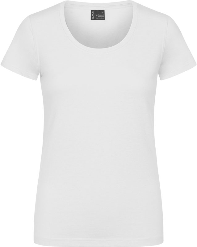 Damen Workwear T-Shirt – EXCD, Schmal eingefasster femininer Ausschnitt mit Elasthan, Nackenband, Schulter- und Doppelnähte verstärkt, Schlaufen in der Seitennaht innen, extrem glatte pillingresistente Oberfläche, Industriewäsche, 60° waschbar, trocknergeeignet, Material: 180g/m², 60% ringgesponnene Baumwolle, 40% Polyester VORTEX® Garn, Single Jersey, Größen: S,M,L,XL,XXL,3XL